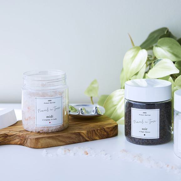 ヒマラヤ山脈の岩塩を使ったイデーオリジナルのバスソルト。岩塩に「Travel in Time〜開放的なバスタイムに旅をする」ようなイメージの香りをオリジナルブレンドで調合しています。<優雅な香りに包まれて、旅をするような贅沢なバスタイムをお過ごしください。