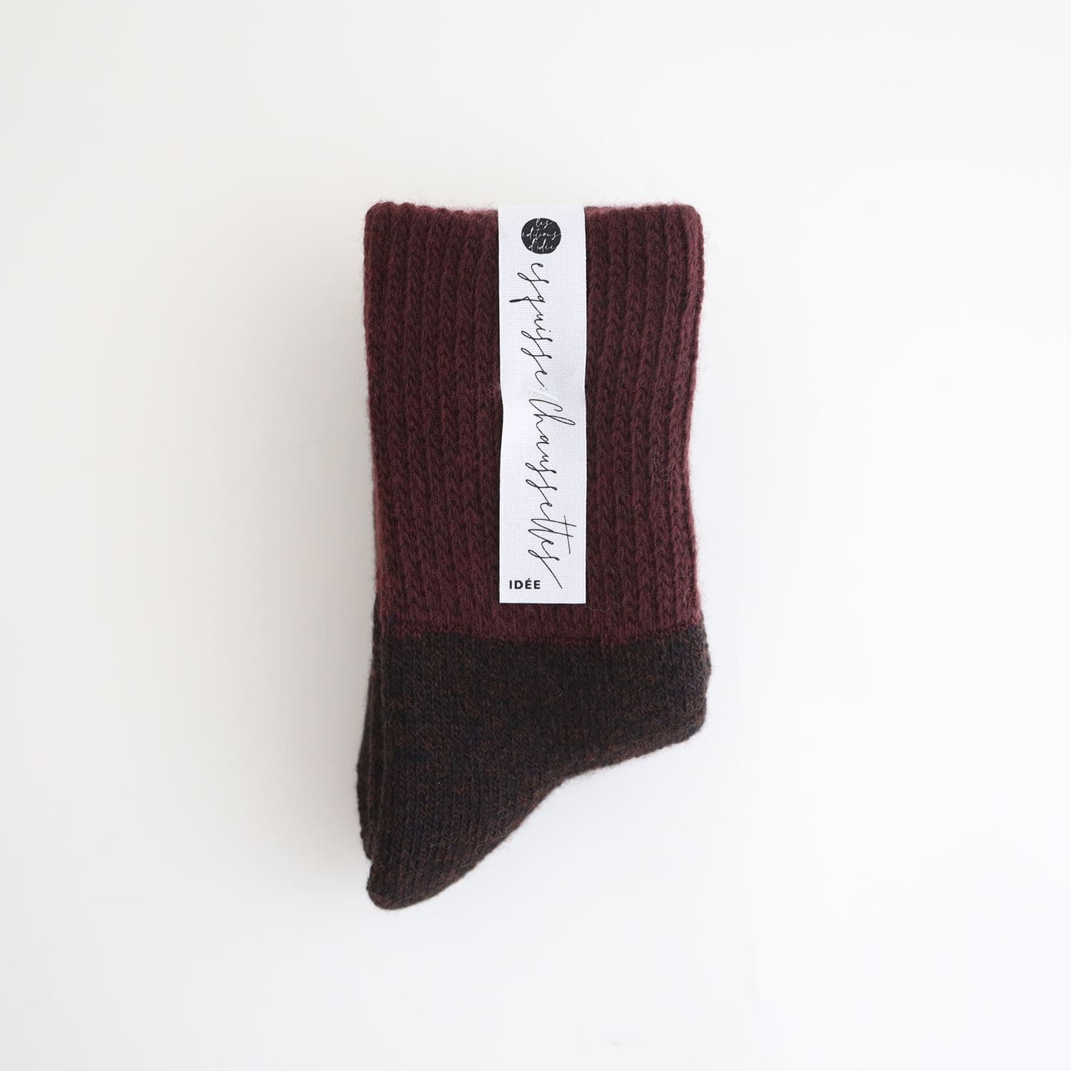 イデー ルームソックス バーガンディ×ダークブラウン 靴下