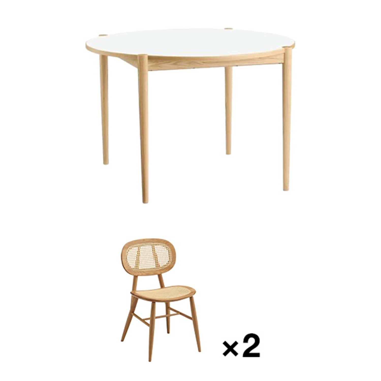 - こちらの商品はNOVA DINING TABLE ROUND 1100 Natural×White×1、CONVENTO CHAIR Natural×2がセットになっています。