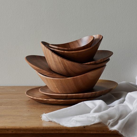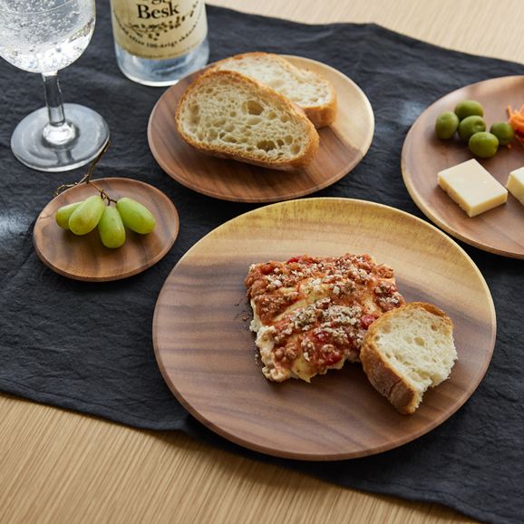 あたたかみのあるアカシアの木目が料理をやさしく引き立てます。 小さいサイズは取り皿に。M・Lサイズはサラダ、パンなどさまざまな料理に使いやすく、食卓に自然と馴染みます。
