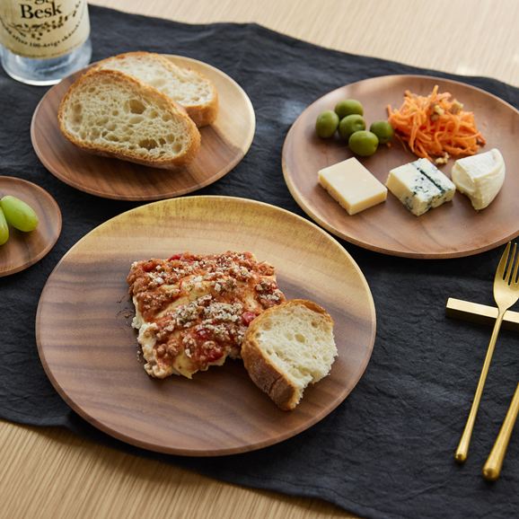 あたたかみのあるアカシアの木目が料理をやさしく引き立てます。小さいサイズは取り皿に。M・Lサイズはサラダ、パンなどさまざまな料理に使いやすく、食卓に自然と馴染みます。