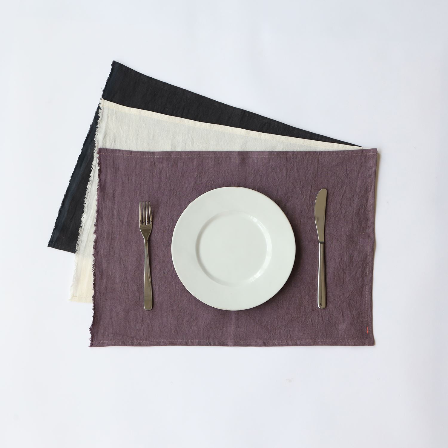 リネン100%の生地を使用し、洗いのかかった柔らかな風合いのプレイスマットとキッチンクロスです。普段は隠れてしまう織り耳を生かしシンプルな中にさりげない表情をもたせました。使うほどになじみ、リネンらしい風合いが深まり日常にやさしく寄り添います。