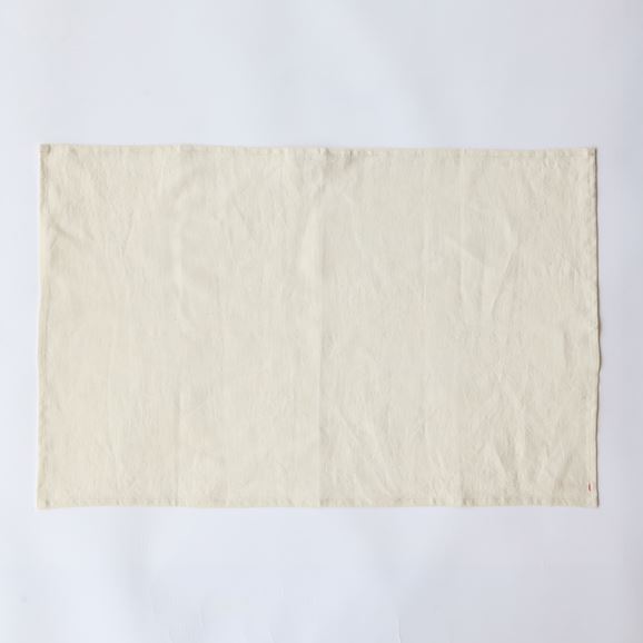 リネン100%の生地を使用し、洗いのかかった柔らかな風合いのプレイスマットとキッチンクロスです。普段は隠れてしまう織り耳を生かしシンプルな中にさりげない表情をもたせました。使うほどになじみ、リネンらしい風合いが深まり日常にやさしく寄り添います。