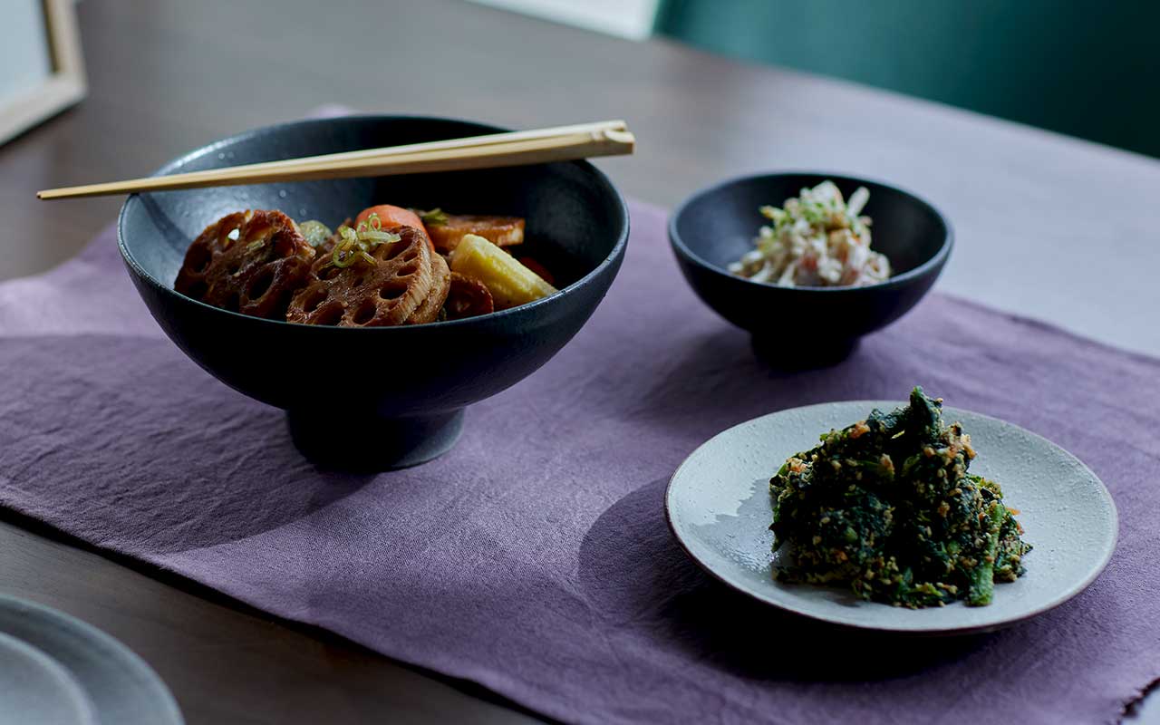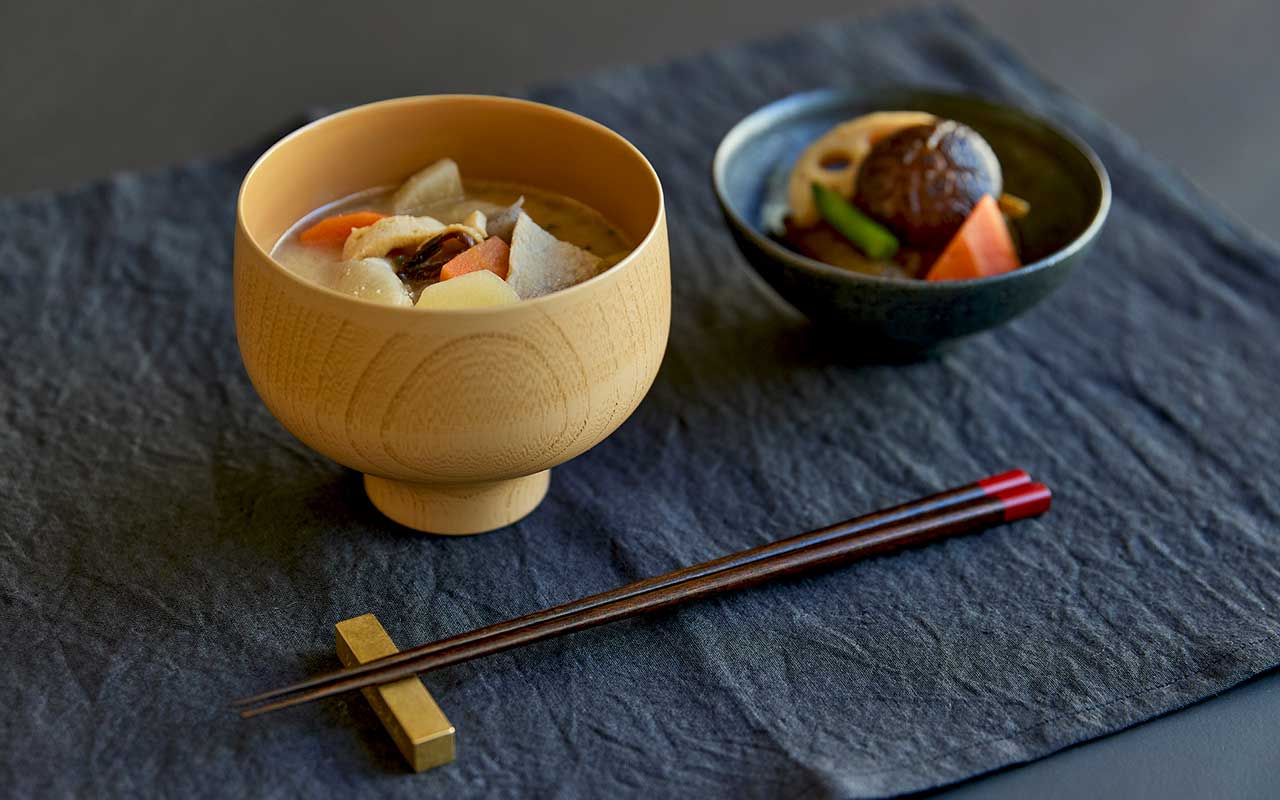<p>漆の箸やお椀、洗いのかかったリネン、使うたびに静かに愛着が育っていくテーブルウェアと一緒に、何気ない毎日の食卓を味わい深いものに演出します。</p>