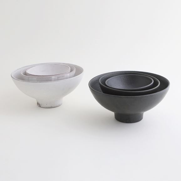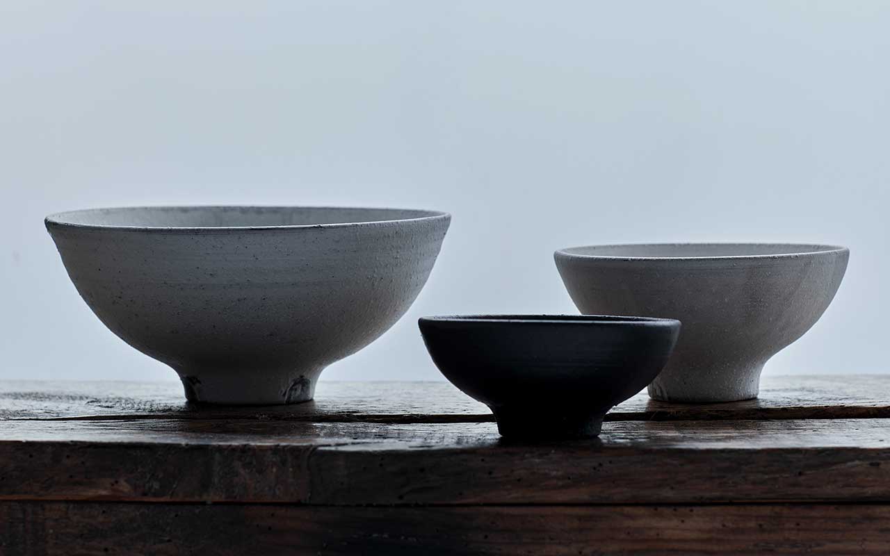 柔らかな白と深みのある黒が和の素朴な趣を纏い、エスプリを持った空間になじむ器です。
