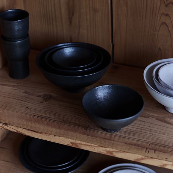 柔らかな白と深みのある黒が和の素朴な趣を纏い、エスプリを持った空間になじむ器です。