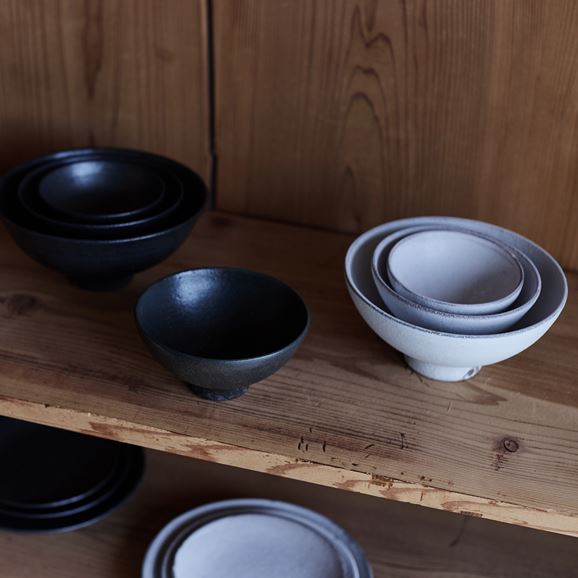 柔らかな白と深みのある黒が和の素朴な趣を纏い、エスプリを持った空間になじむ器です。