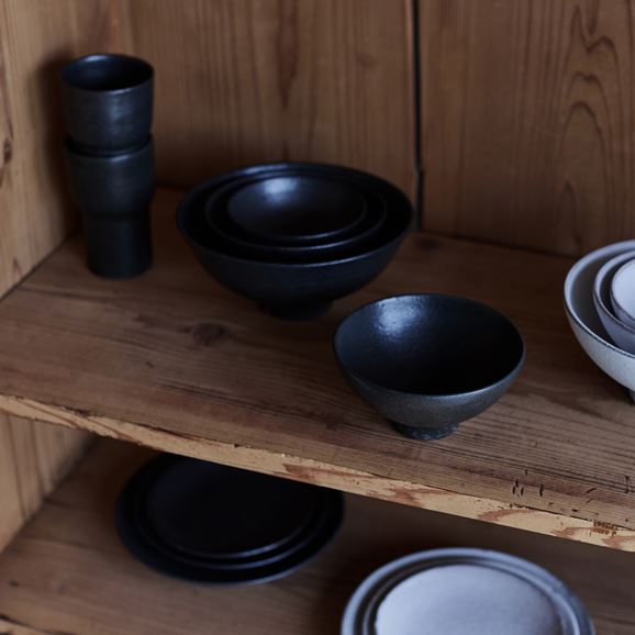 柔らかな白と深みのある黒が和の素朴な趣を纏い、エスプリを持った空間になじむ器です。