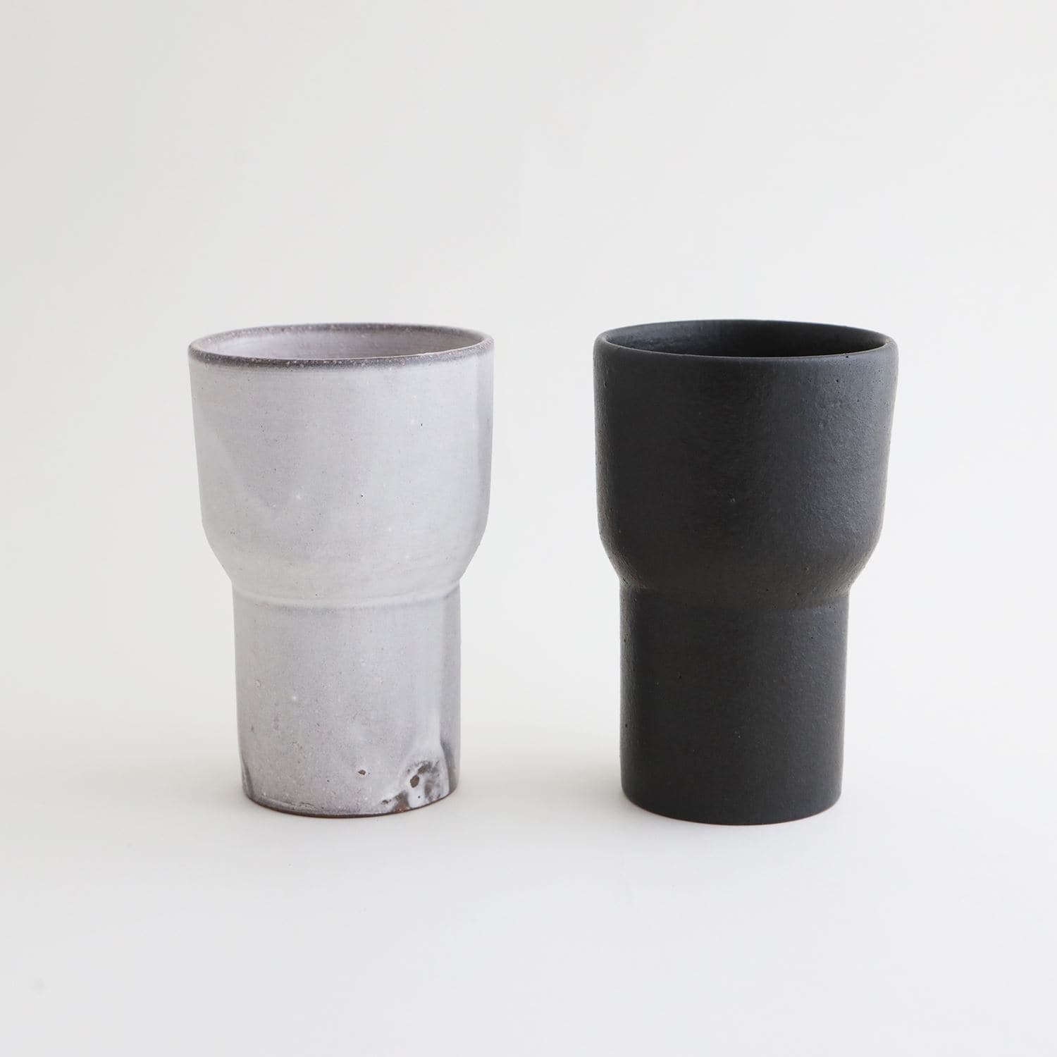 <p>研ぎ澄まされた形のなかに、どこかおおらかさを感じるフォルム。白はニュアンスのあるゆるやかな粉引き仕上げ。