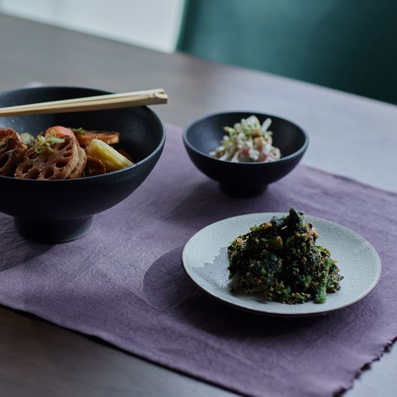 <p>漆の箸やお椀、洗いのかかったリネン、使うたびに静かに愛着が育っていくテーブルウェアと一緒に、何気ない毎日の食卓を味わい深いものに演出します。</p>