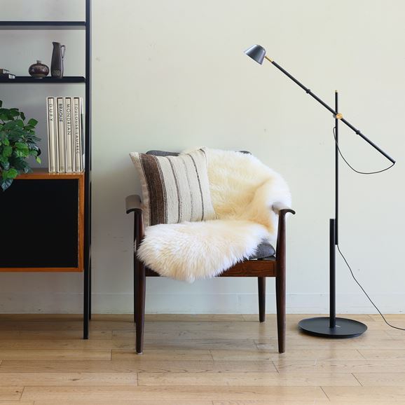 Owen Barryのシープスキンラグ。シープスキンならではの美しい艶と上品さ、そして高級感。羊の形そのままのラグは一人がちょうど座れるくらいのサイズです。コンパクトなラグは足元に敷くだけでなく椅子の座面に置けばあたたかく過ごせます。ゆったりと読書をしたり、お酒を飲むスペースにも。