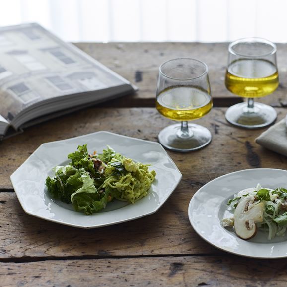 フランスの伝統的なデザインを取り入れたイデーオリジナルの洋食器シリーズです。一から型を起こし、長崎県で製作した波佐見焼の器。料理を引き立てる少しグレーがかった釉薬と、成型に人の手を加えることで一点物のような揺らぎと厚みにもこだわりました。サイズ違い、デザイン違いで揃えるのもおすすめです。