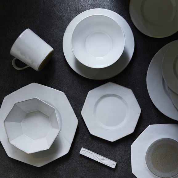 白〜グレー味のあるくすんだ色合いや釉薬のムラ感が絶妙に料理の良さを引き立ててくれます。持ってみると軽さもあり扱いやすいサイズ感なので毎朝コーヒータイムに活躍してます。釉薬のかかり具合を個体差として感じられるのも嬉しいポイントです。