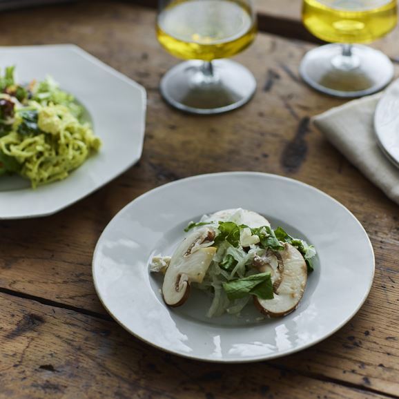 フランスの伝統的なデザインを取り入れたイデーオリジナルの洋食器シリーズです。一から型を起こし、長崎県で製作した波佐見焼の器。料理を引き立てる少しグレーがかった釉薬と、成型に人の手を加えることで一点物のような揺らぎと厚みにもこだわりました。サイズ違い、デザイン違いで揃えるのもおすすめです。
