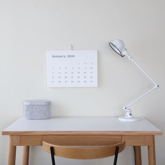 アートディレクター・葛西薫によるデザインのマンスリーカレンダー。ミニマルな美しいグラフィックは柔らかい雰囲気があります。タイムレスで飽きのこない定番カレンダーとして開発されました。オリジナルの「Kハンガー」を真ん中の穴に通して引っ掛けます。デザインは罫線あり・なしの2種類からお選びいただけます。
