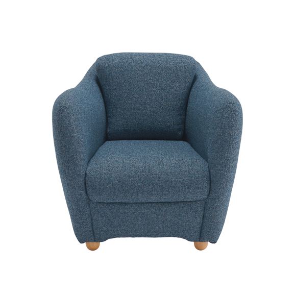 お子さま用としてはもちろん、大人が座ってもすっぽりと包み込まれるような快適な座り心地。床に近い低めのシートと腕に沿うカーブしたアームが身体を支え、想像以上にゆったりとくつろげます。脚部にはナチュラルに仕上げたブナ材を使用。愛らしい半球形の脚がチェア全体のフォルムを引き立てます。ころんとした後ろ姿も魅力です。