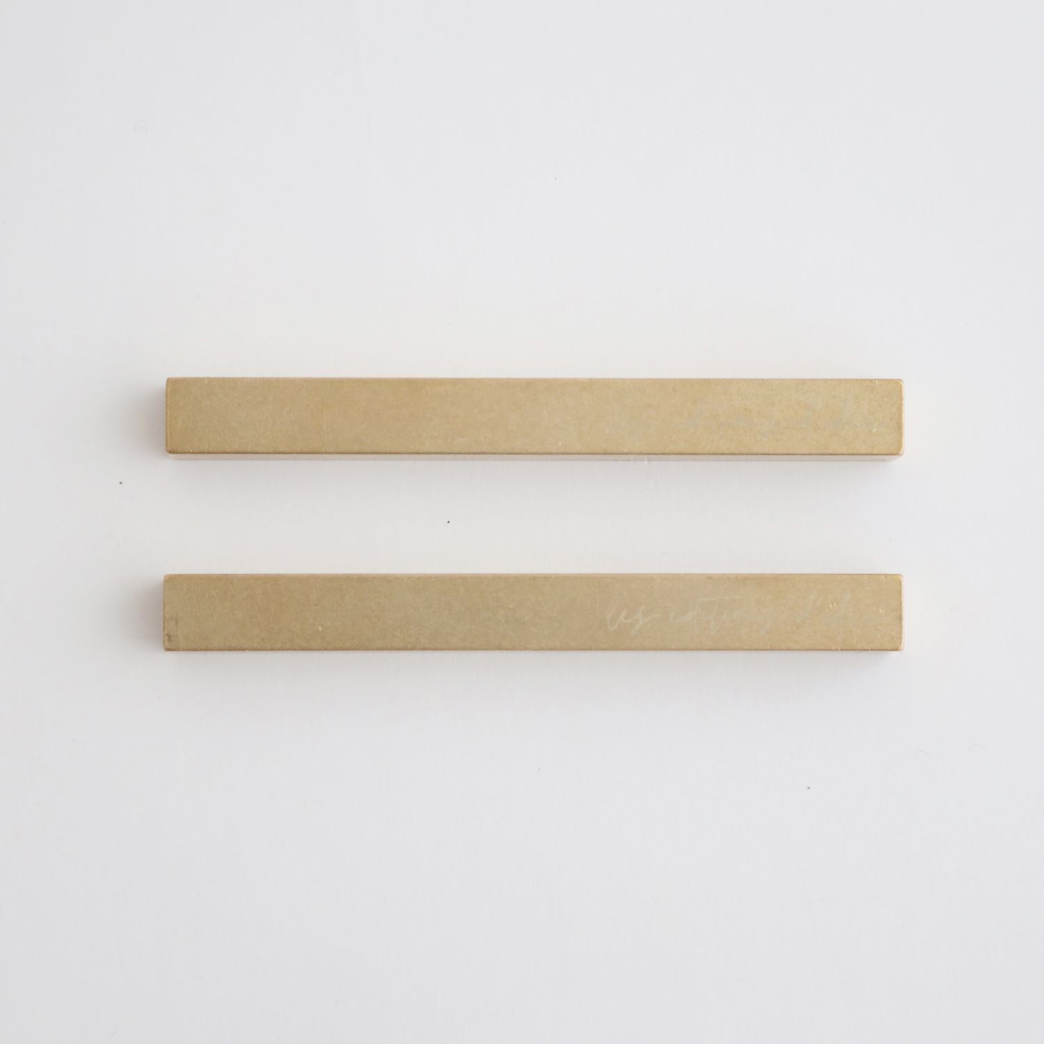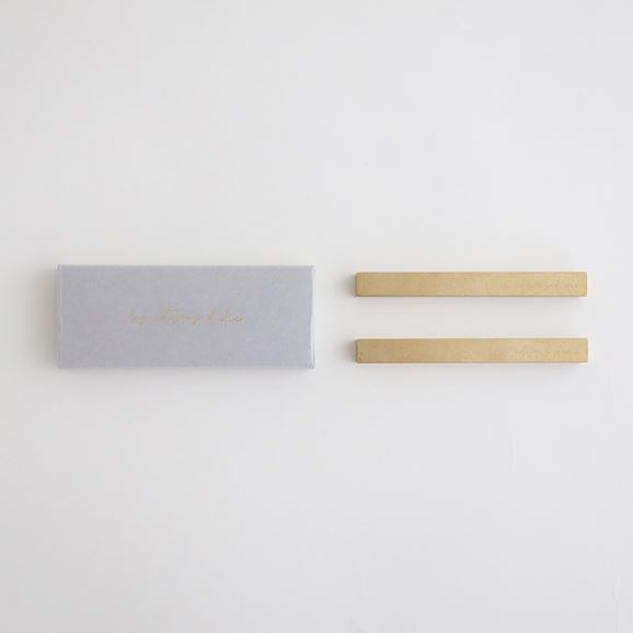 400年の歴史がある銅器産業・ものづくりの街富山県高岡市にて作られたイデーオリジナルの真鍮の箸置きです。特別感をあしらったロゴが入っています。真鍮は時間の経過とともに現れる経年変化も楽しみのひとつです。