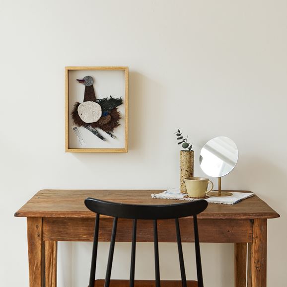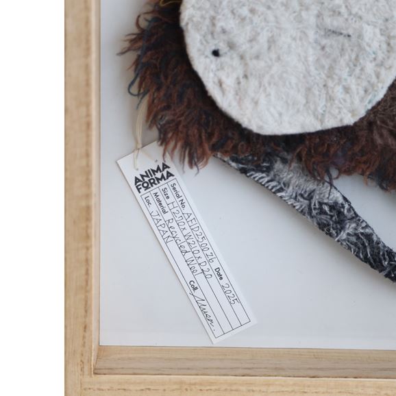 「バードシリーズ」&#8203;<br>ダチョウ、ツル、鳩、ペンギンを思わせる姿や恐竜のようなフォルムなど、自然の音に包まれた環境と偶然のかたちが重なって生まれた、世界にひとつだけの鳥たち。<br>&#8203;標本箱に収められた鳥たちにはシリアルナンバーや個体のサイズ、発見された日付、生息地、制作者のサインが記された標本タグが付いています。まるで博物館の展示室に並ぶ標本を眺めるように、それぞれの鳥が持つ物語を想像しながらじっくりとお愉しみください。<br><br>テキスタイル工場から出る獣毛生地の端材を、ニードルパンチ技法によってフェルト化し、そのカケラを用いて小さな毛物(獣)たちを制作しました。ケースには本物の標本箱を使用しており、蓋は取り外し可能となっています。作品は、全て一点ものです。<dl class="detail_image"><dt><img src="/images/item_page/animaforma/bird_scene01.jpg" alt="" class="detailphoto"/></dt><dd class="detail_txt"><h5>世界にひとつだけの鳥たち</h5><p>植物園の隣にあるアトリエで樹木や池を借景にしながら、鳥のさえずりをBGMに制作される架空の鳥たちのコレクションです。四季を通じて訪れるさまざまな鳥たちが創作のインスピレーションになっています。作品は、獣毛生地の端材をニードルパンチで形づくるところから始まります。ある日アトリエの床に落ちた小さな端材が偶然鳥のかたちに見えたことがきっかけで、このシリーズが誕生しました。丸い端材は卵のように、糸屑の集まりは巣のようにも見え、素材のかたちが物語を生み出します。</p></dd></dl><h5 class="mt40">ANIMA FORMAの全ラインナップはこちら</h5><a href="/shop/e/eAnima/"><img src="/images/item_page_banner/itemPage_bnr_anima.jpg" alt="ANIMA FORMA" class="itempagebnr"></a>