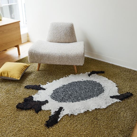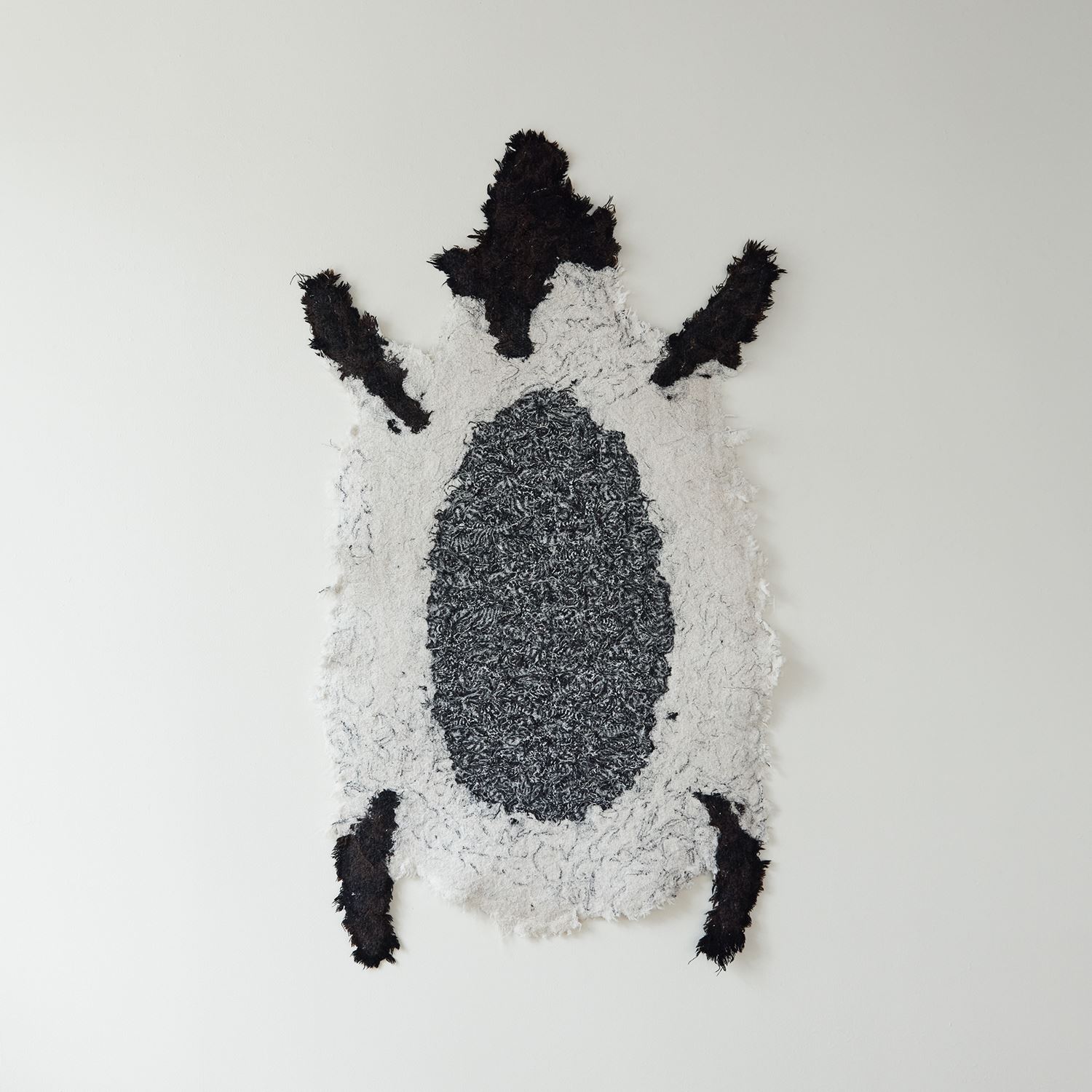 テキスタイル工場から出る獣毛生地の端材を、ニードルパンチ技法によってフェルト化し、新たな毛物(獣)を制作しました。ラグとしてお使いいただく際は、商品に付属している注意書きをご確認ください。作品は、全て一点モノです。