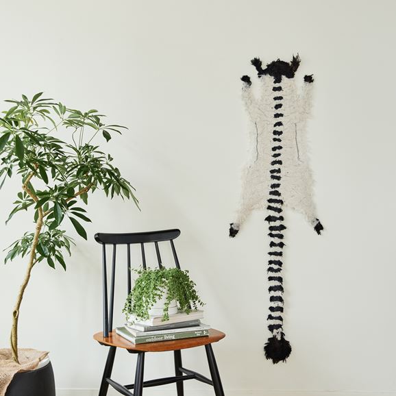 テキスタイル工場から出る獣毛生地の端材を、ニードルパンチ技法によってフェルト化し、新たな毛物(獣)を制作しました。作品の裏面にフックが付属しているので、ウォールアートとしてお部屋に飾ることが出来ます。作品は、全て一点モノです。