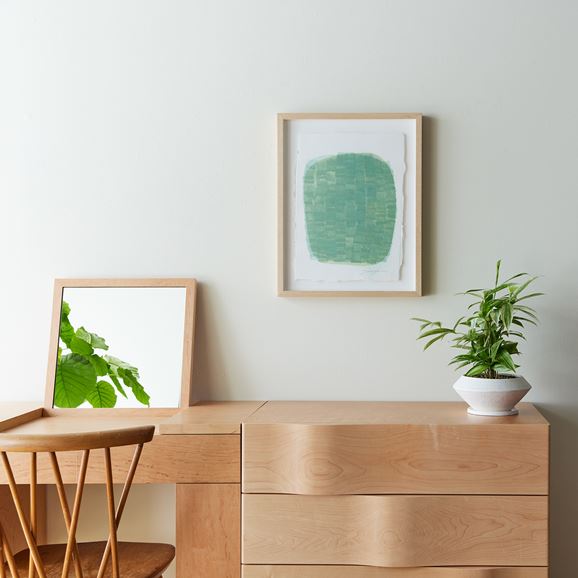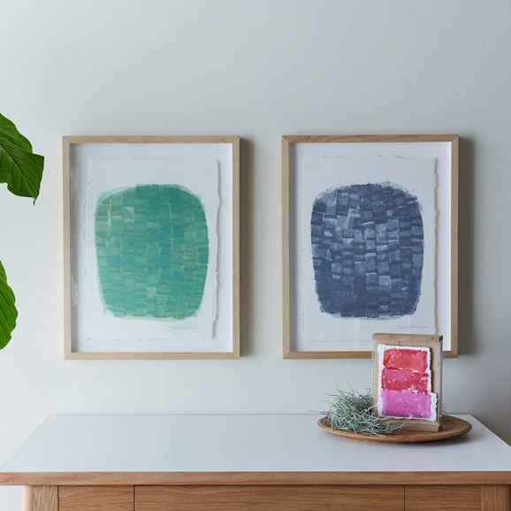 紙を、描くための支持体としてのみならず、それを描く側にも用いて表現をする「パルプアート」。紙の原料である楮やパルプなどを顔料インクで染め、型に流して成型、あるいはフリーハンドでカットして作られています。自然素材ゆえに着色や乾燥後の発色の具合がそのたびに異なり、二つとない作品が生まれます。モチーフは織物の模様や、雑多に置かれた本の山といった、望月さんの目に偶然留まった"何か"。無意識のうちに惹かれた"何か"をパルプの色や質感、かたちを通して表現しています。