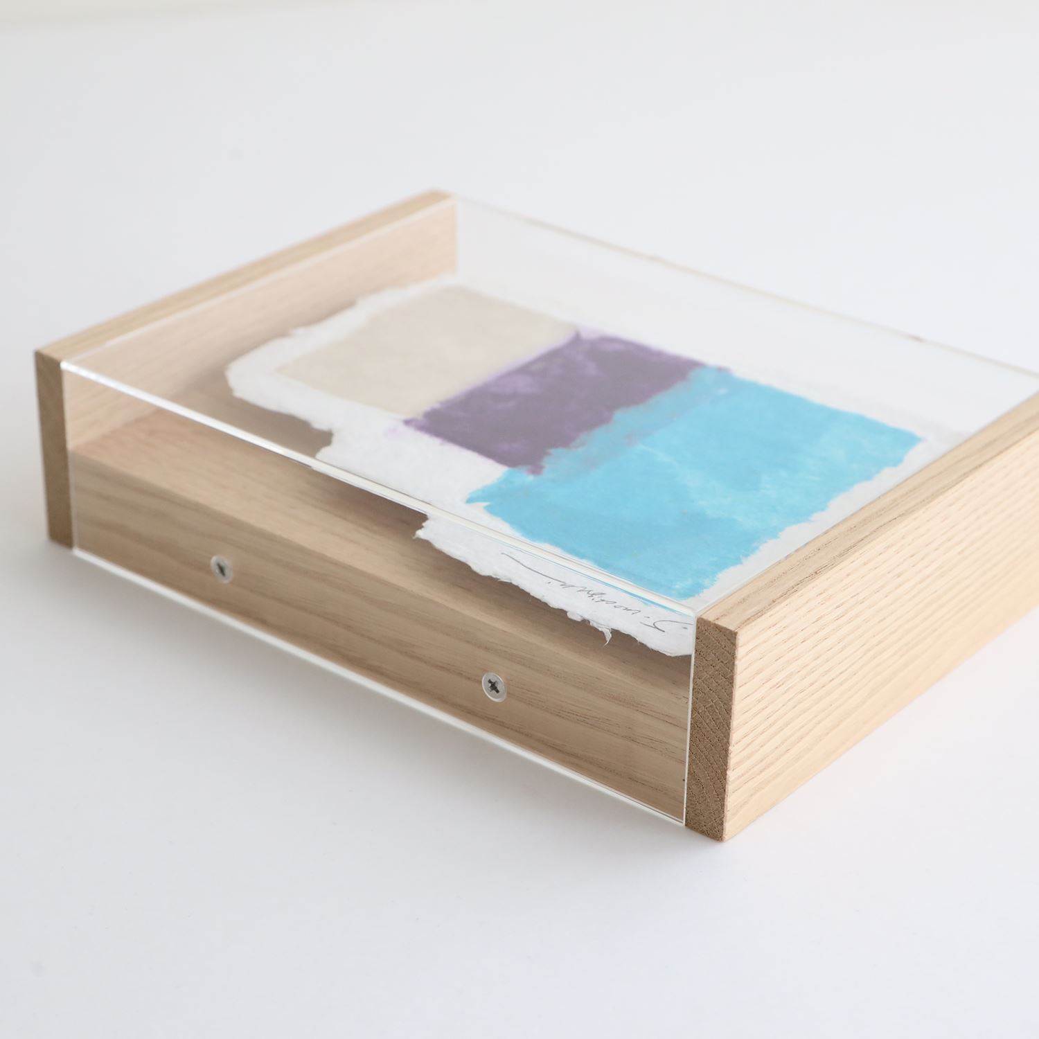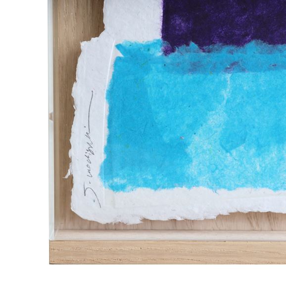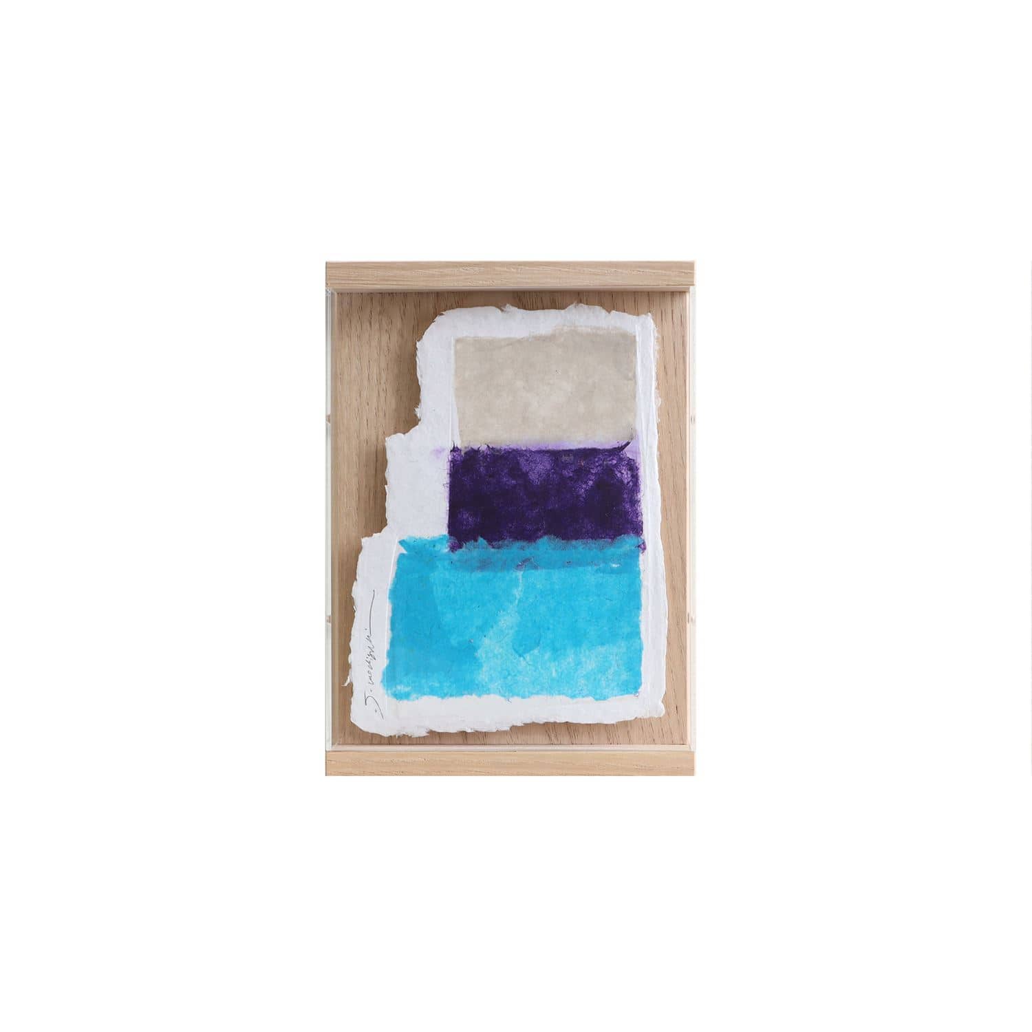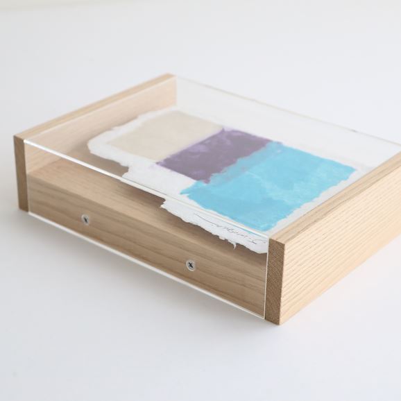 紙を、描くための支持体としてのみならず、それを描く側にも用いて表現をする「パルプアート」。紙の原料である楮やパルプなどを顔料インクで染め、型に流して成型、あるいはフリーハンドでカットして作られています。自然素材ゆえに着色や乾燥後の発色の具合がそのたびに異なり、二つとない作品が生まれます。モチーフは織物の模様や、雑多に置かれた本の山といった、望月さんの目に偶然留まった"何か"。無意識のうちに惹かれた"何か"をパルプの色や質感、かたちを通して表現しています。