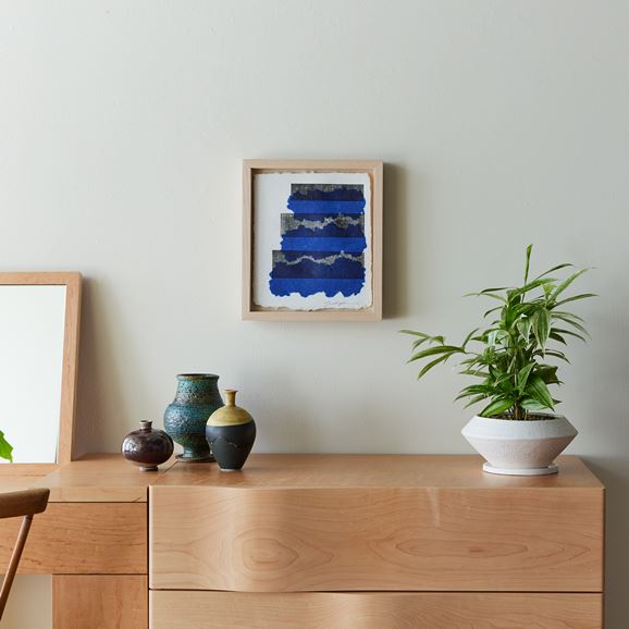 紙を、描くための支持体としてのみならず、それを描く側にも用いて表現をする「パルプアート」。紙の原料である楮やパルプなどを顔料インクで染め、型に流して成型、あるいはフリーハンドでカットして作られています。自然素材ゆえに着色や乾燥後の発色の具合がそのたびに異なり、二つとない作品が生まれます。モチーフは織物の模様や、雑多に置かれた本の山といった、望月さんの目に偶然留まった"何か"。無意識のうちに惹かれた"何か"をパルプの色や質感、かたちを通して表現しています。