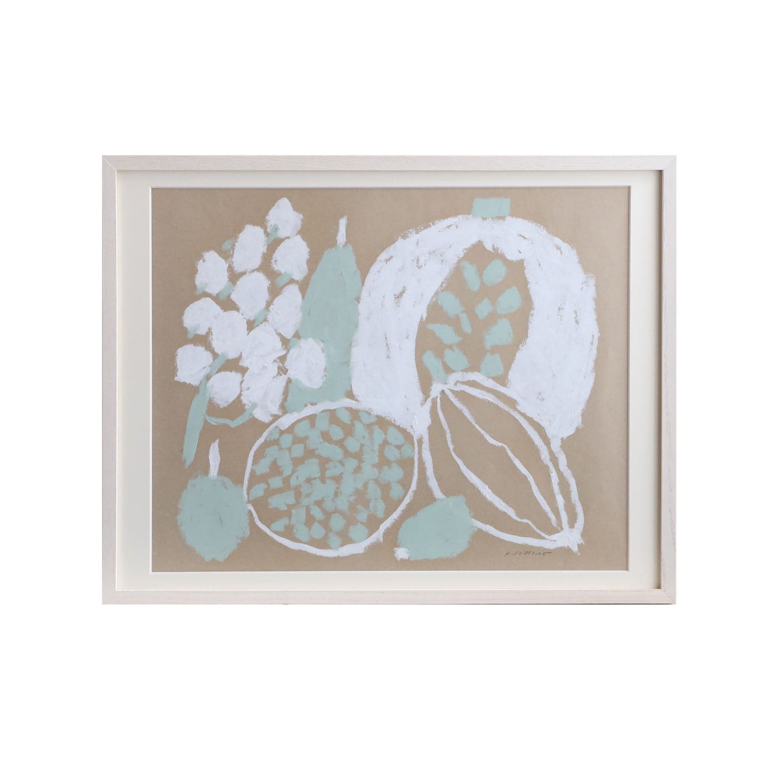 彼女の作品は静物画でありながら、ただ目に見えるものや風景を正確に再現しているのではなく、独特のカタチの中にリズムや気配が感じられ、どこか抽象画のようでもあります。