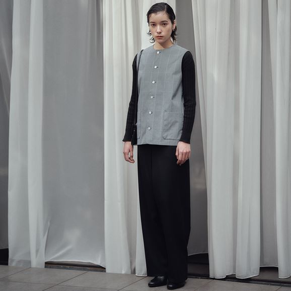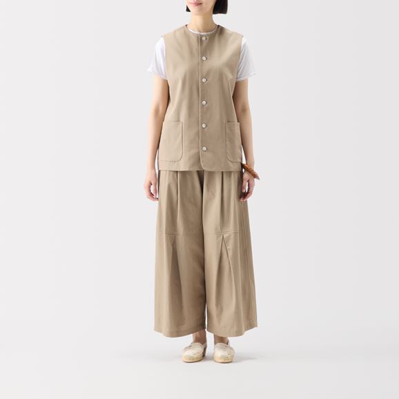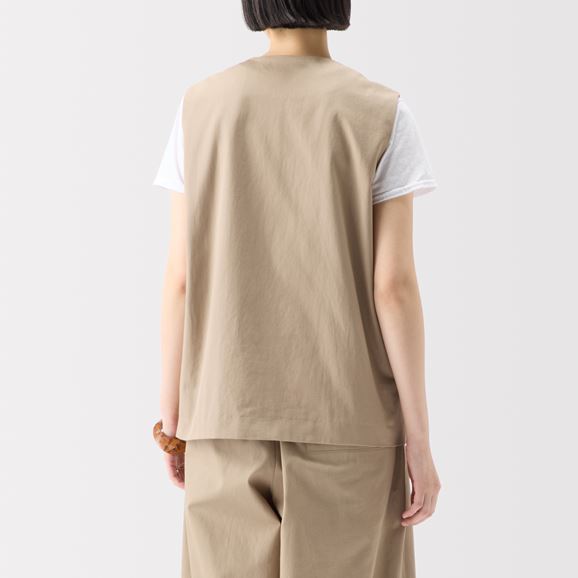 min&#228; perhonen皆川明さん監修のもと、各地の生産現場で生まれた残反や残糸を活かして仕立てたイデーのウェアシリーズ「H& by POOL(ハンド バイ プール)」のベスト。<br>素材に向き合い、生産背景を大切にしながら、生産者とお客さまをつなぐ想いが込められた一着です。<br>Beige、Black:日本の優れた強撚技術によって生まれた張りのあるさらりとした綿100%の生地を使用し、快適な着心地です。<br>Black Check:綿100%でほどよい張りがあり、細かなブラックとブルーグレーのチェックが上品な印象をもたらします。<br><dl class="detail_image"><dt><img src="/images/item_page/hand/26ss/vst01.jpg" alt="" class="detailphoto"/></dt><dd class="detail_txt"><h5>ディテールにもこだわったデザイン</h5><p>光を受けて輝く天然素材の白蝶貝ボタンが、上品なアクセントになっています。 口が広いパッチポケットは物の出し入れがしやすく、少しリラックスした雰囲気に。</p></dd></dl><dl class="detail_image mt40"><dt><img src="/images/item_page/hand/26ss/vst02.jpg" alt="" class="detailphoto"/></dt><dd class="detail_txt"><h5>コーディネートのプラスワンアイテム</h5><p>ストンとしたシルエットでシャツやカットソーの上から1枚羽織るだけで様になります。 同素材でのパンツとセットアップでの合わせはもちろん、ワンピースの上に羽織るのもおすすめです。<br>※コーディネートのセットアップした商品は<a href="/shop/g/g4550723208147/">こちら</a>。</p></dd></dl><h6 class="mt20">コーディネートおすすめアイテム</h6><ul class="flex col4"><li><a href="/shop/g/g4550723291217/"><img src="/img/goods/12/4550723291217_org.jpg" alt="H& by POOL Cotton Lib Longsleeve Black" class="detailphoto"><p class="itemName">H& by POOL Cotton Lib Longsleeve Black</p></a></li><li><a href="/shop/g/g4550723208147/"><img src="/img/goods/12/4550723208147_org.jpg" alt="H& by POOL Wide Pants Beige" class="detailphoto"><p class="itemName">H& by POOL Wide Pants Beige</p></a></li><li><a href="/shop/g/g4550723208185/"><img src="/img/goods/12/4550723208185_org.jpg" alt="H& by POOL GatheRed Skirt Off White Stripe" class="detailphoto"><p class="itemName">H& by POOL GatheRed Skirt Off White Stripe</p></a></li><li><a href="/shop/g/g4550723208130/"><img src="/img/goods/12/4550723208130_org.jpg" alt="H& by POOL Pants Navy Black" class="detailphoto"><p class="itemName">H& by POOL Pants Navy Black</p></a></li></ul><h5 class="mt20">H& by POOLシリーズの全ラインナップはこちら</h5><a href="/shop/e/eHand/"><img src="/images/item_page_banner/itemPage_bnr_hand.jpg" alt="【特集】H& by POOL" class="itempagebnr"></a>
