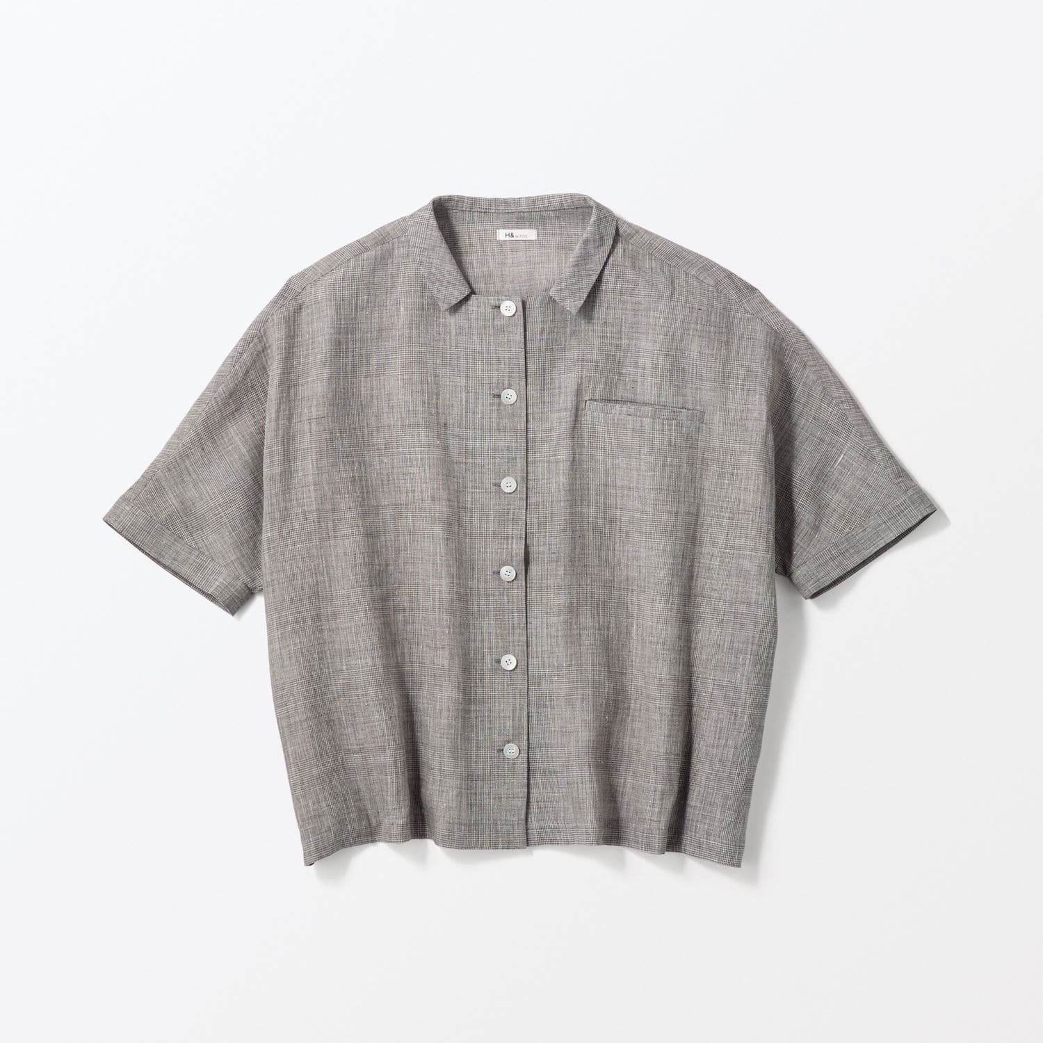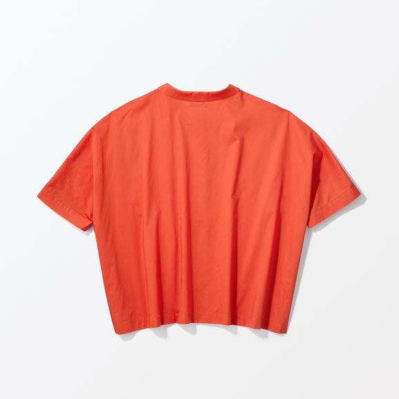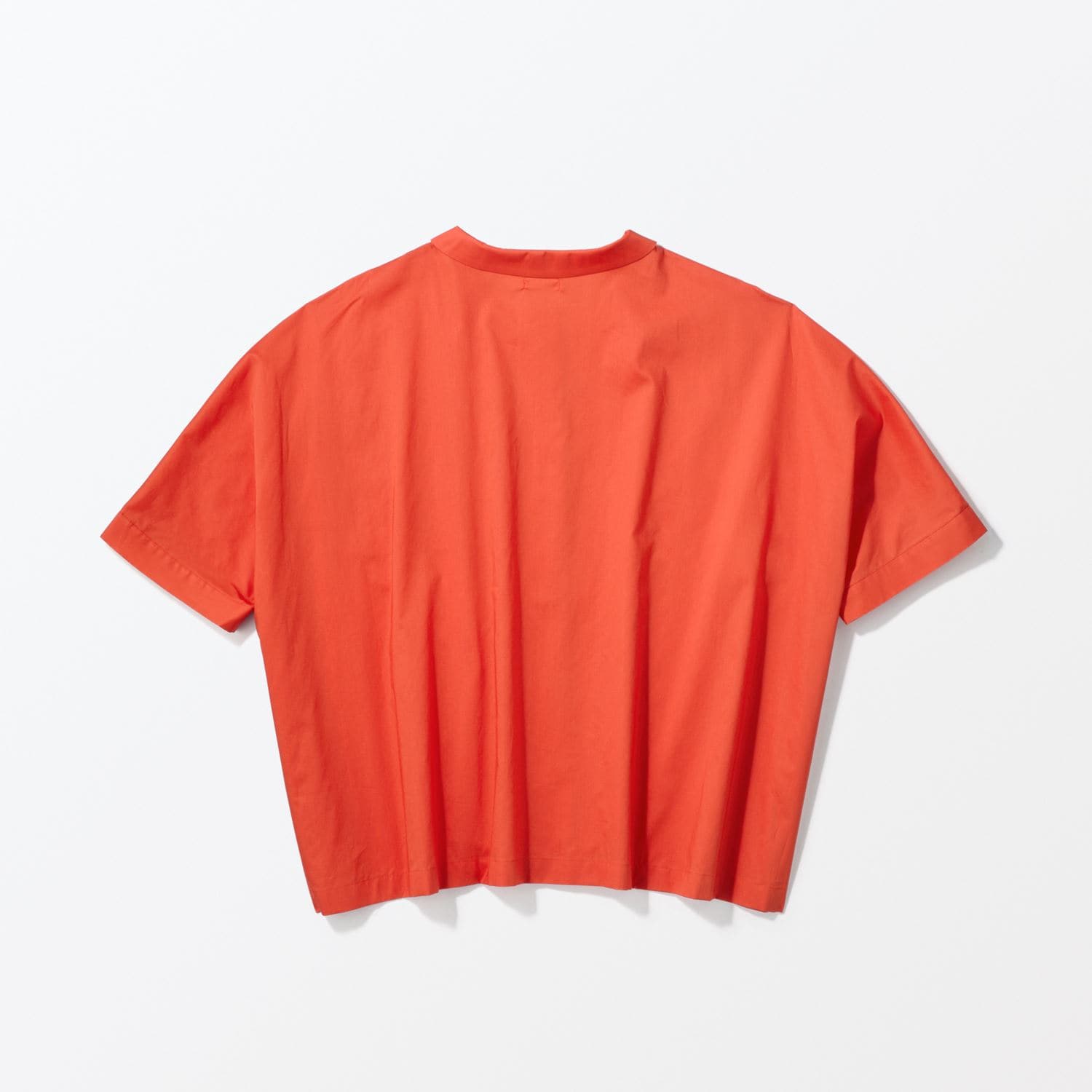 身幅をゆったりとったオーバーサイズのシャツです。こぶりな襟とスクエアにカットしたようなネックラインが印象的。ボタンをあけて羽織りものとしても活躍します。