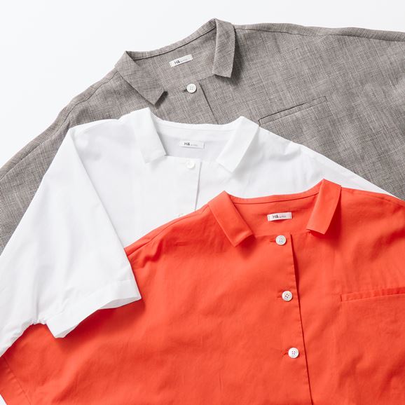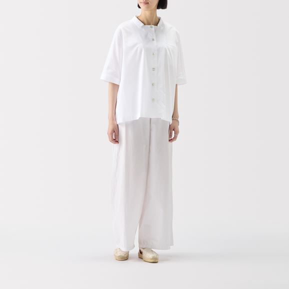 minä perhonen皆川明さん監修のもと、各地の生産現場で生まれた残反や残糸を活かして仕立てたイデーのウェアシリーズ「H& by POOL(ハンド バイ プール)」のワイドシャツ。