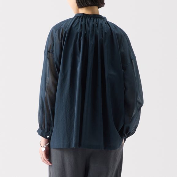 軽やかなシアー生地を使用した涼しげなブラウス。合わせるインナー次第で印象が変わり、春から秋口まで長く楽しめる万能アイテムです。