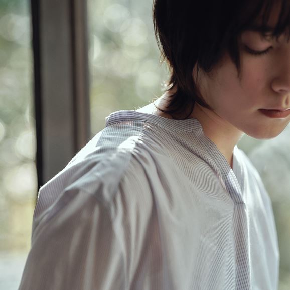 素材に向き合い、生産背景を大切にしながら、生産者とお客さまをつなぐ想いが込められた一着です。生産地で行き場をなくしていた生地を使用し作りました。