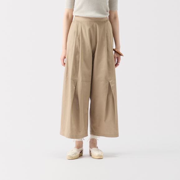 さまざまなトップスと相性がよく、どんなスタイルにも合わせやすいのが魅力です。 膝部分から大きく入ったタックで立体感のあるシルエットに。動くたびに豊かな表情が生まれます。