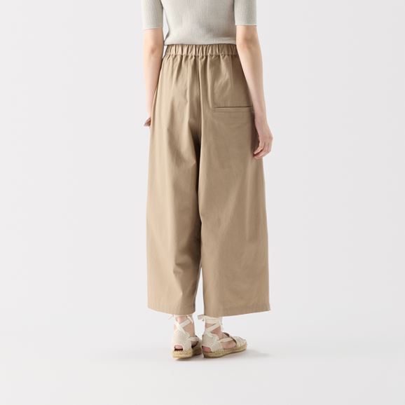 min&#228; perhonen皆川明さん監修のもと、各地の生産現場で生まれた残反や残糸を活かして仕立てたイデーのウェアシリーズ「H& by POOL(ハンド バイ プール)」のパンツ。<br>素材に向き合い、生産背景を大切にしながら、生産者とお客さまをつなぐ想いが込められた一着です。生産地で行き場をなくしていた生地を使用し作りました。<br>Beige、Black:日本の優れた強撚技術によって生まれた張りのあるさらりとした綿100%の生地を使用し、快適な着心地です。<br>Off White:綿100%のやや起毛した肌触りのよい生地です。<br>White:ジンバブエコットンを使用した、しなやかな手触りが特徴のホワイトデニム。快適な着心地です。<br>Beige、Navy:さらりとした肌触りの綿と、軽さ・通気性・吸水速乾性に優れた紙を組み合わせた素材です。<br><dl class="detail_image"><dt><img src="/images/item_page/hand/26ss/wd_pt01.jpg" alt="" class="detailphoto"/></dt><dd class="detail_txt"><h5>きれいめでも楽な着心地</h5><p>ウエスト部分は内側の紐で調整でき、背面にゴムが入っているためストレスフリーな着心地です。ウエスト周りがすっきりし、きちんとした印象になります。</p></dd></dl><dl class="detail_image mt40"><dt><img src="/images/item_page/hand/26ss/wd_pt02.jpg" alt="" class="detailphoto"/></dt><dd class="detail_txt"><h5>シーンを選ばず着回し力抜群</h5><p>さまざまなトップスと相性がよく、どんなスタイルにも合わせやすいのが魅力です。 膝部分から大きく入ったタックで立体感のあるシルエットに。動くたびに豊かな表情が生まれます。<br>※コーディネートのセットアップした商品は<a href="/shop/g/g4550723208215/">こちら</a>。</p></dd></dl> <h5 class="mt20">コーディネートおすすめアイテム</h5><ul class="flex col4"><li><a href="/shop/g/g4550723291149/"><img src="/img/goods/12/4550723291149_org.jpg" alt="H& by POOL Cotton Knit Shirt Navy" class="detailphoto"><p class="itemName">H& by POOL Cotton Knit Shirt Navy</p></a></li><li><a href="/shop/g/g4550723291125/"><img src="/img/goods/12/4550723291125_org.jpg" alt="H& by POOL Cotton Pullover Knit Red" class="detailphoto"><p class="itemName">H& by POOL Cotton Pullover Knit Red</p></a></li><li><a href="/shop/g/g4550723291194/"><img src="/img/goods/12/4550723291194_org.jpg" alt=H& by POOL Cotton Lib Tshirt Silver Gray" class="detailphoto"><p class="itemName">H& by POOL Cotton Lib Tshirt Silver Gray</p></a></li><li><a href="/shop/g/g4550723291224/"><img src="/img/goods/12/4550723291224_org.jpg" alt="H& by POOL Cotton Cardigan Ivory" class="detailphoto"><p class="itemName">H& by POOL Cotton Cardigan Ivory</p></a></li></ul><h5 class="mt20">H& by POOLシリーズの全ラインナップはこちら</h5><a href="/shop/e/eHand/"><img src="/images/item_page_banner/itemPage_bnr_hand.jpg" alt="【特集】H& by POOL" class="itempagebnr"></a>