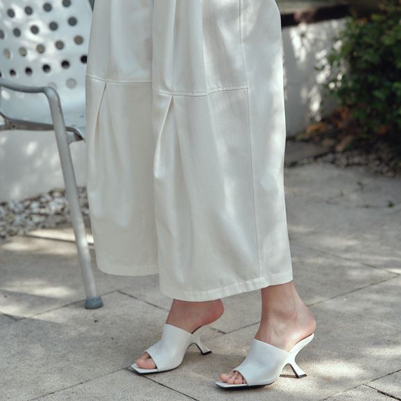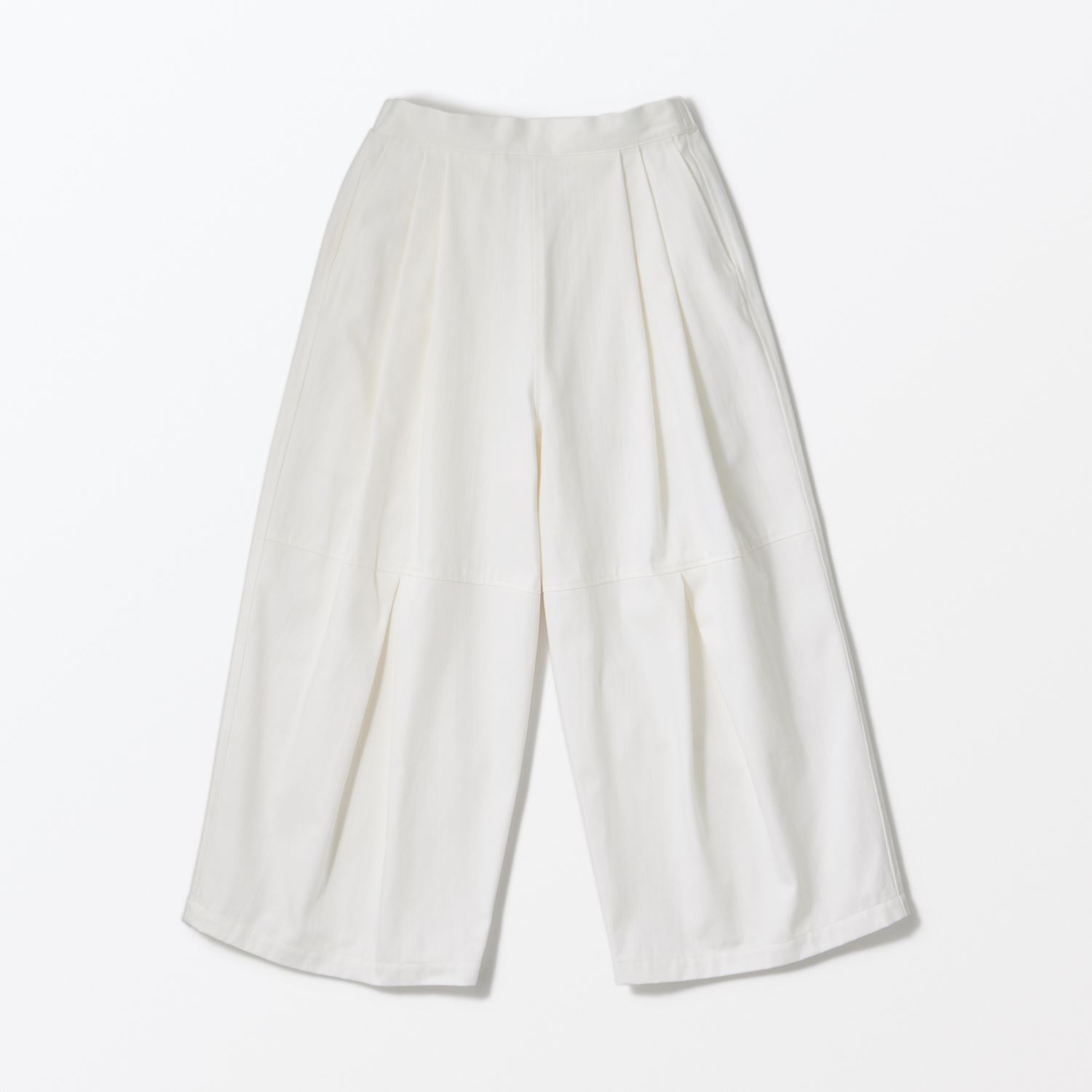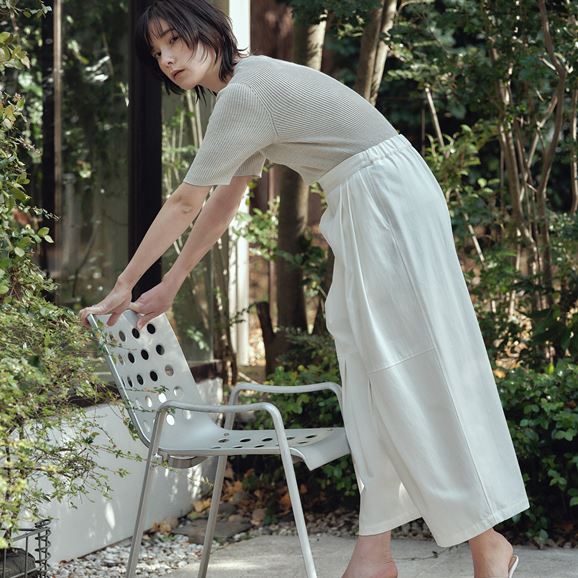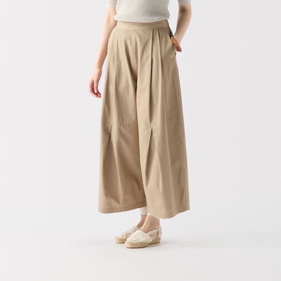 さまざまなトップスと相性がよく、どんなスタイルにも合わせやすいのが魅力です。 膝部分から大きく入ったタックで立体感のあるシルエットに。動くたびに豊かな表情が生まれます。