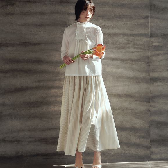 ハンドバイプール ギャザー スカート オフホワイト ストライプ 2026SS ※2026年2月13日(金)発売