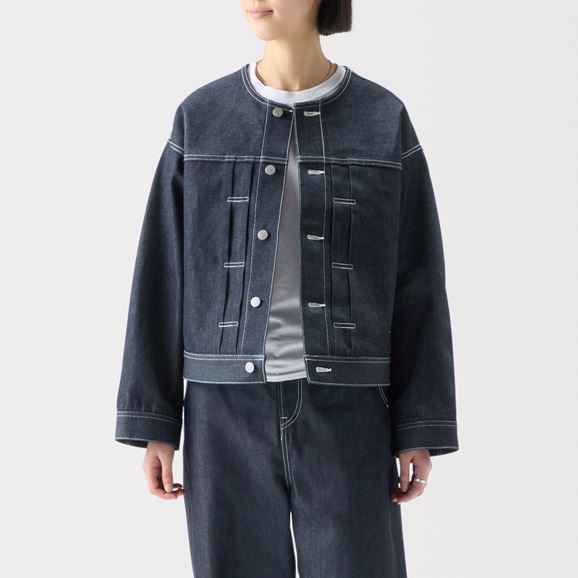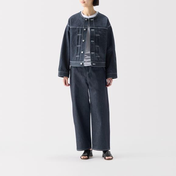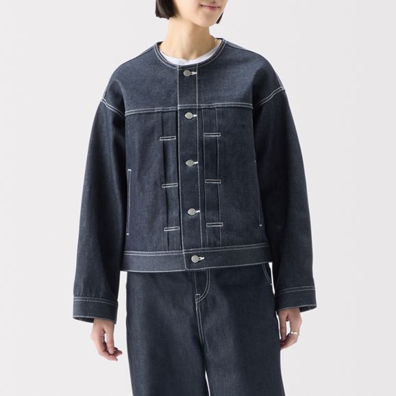 No Collar Denim Jacket Indigo Assort Non Wash