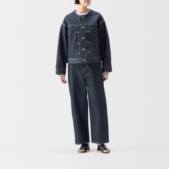 ヒップからストンと落ちるシルエットでスタイルがよく見えます。小柄な方はロールアップでバランスよく着ていただけます。 同じノンウォッシュのジーンズと揃えれば「デニムオンデニム」も愉しめます。一体感が生まれ、インナーやアクセサリーでアクセントを加えることでセットアップスタイルがより一層引き立ちます。