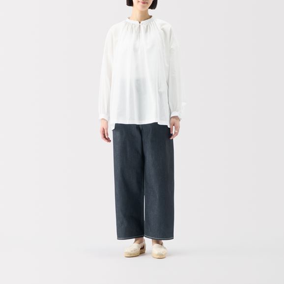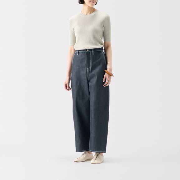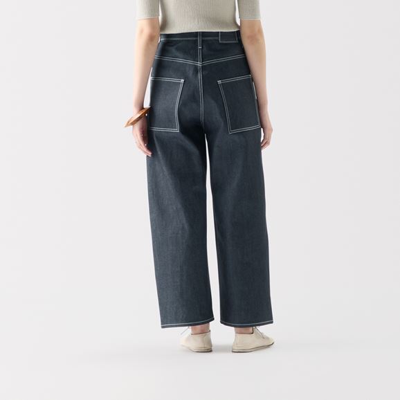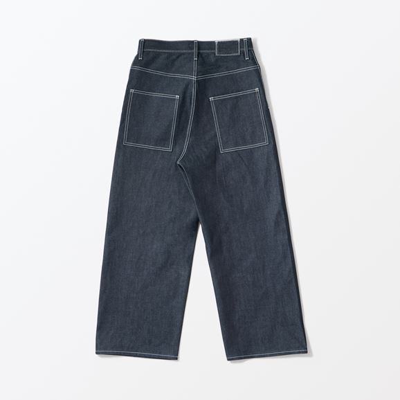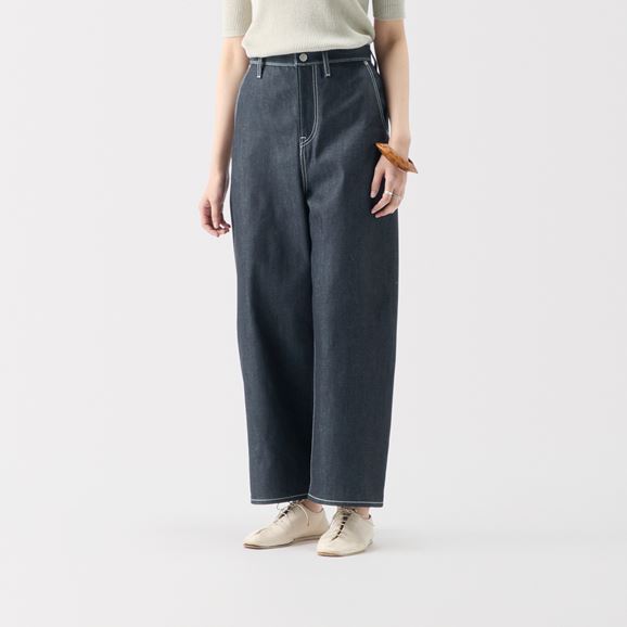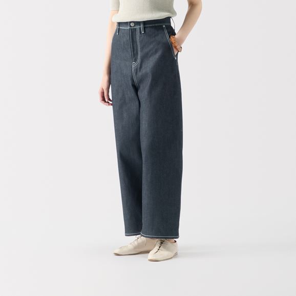 minä perhonen皆川明さん監修のもと、各地の生産現場で生まれた残反や残糸を活かして仕立てたイデーのウェアシリーズ「H& by POOL(ハンド バイ プール)」のデニムパンツ。
