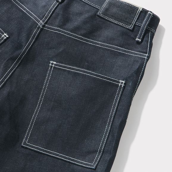 大きなスクエア型のポケットやオリジナルのデニムパッチなど、背面のディテールにもこだわってつくりました。