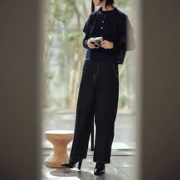 ヒップからストンと落ちるシルエットでスタイルがよく見えます。小柄な方はロールアップでバランスよく着ていただけます。 同じノンウォッシュのジーンズと揃えれば「デニムオンデニム」も愉しめます。一体感が生まれ、インナーやアクセサリーでアクセントを加えることでセットアップスタイルがより一層引き立ちます。