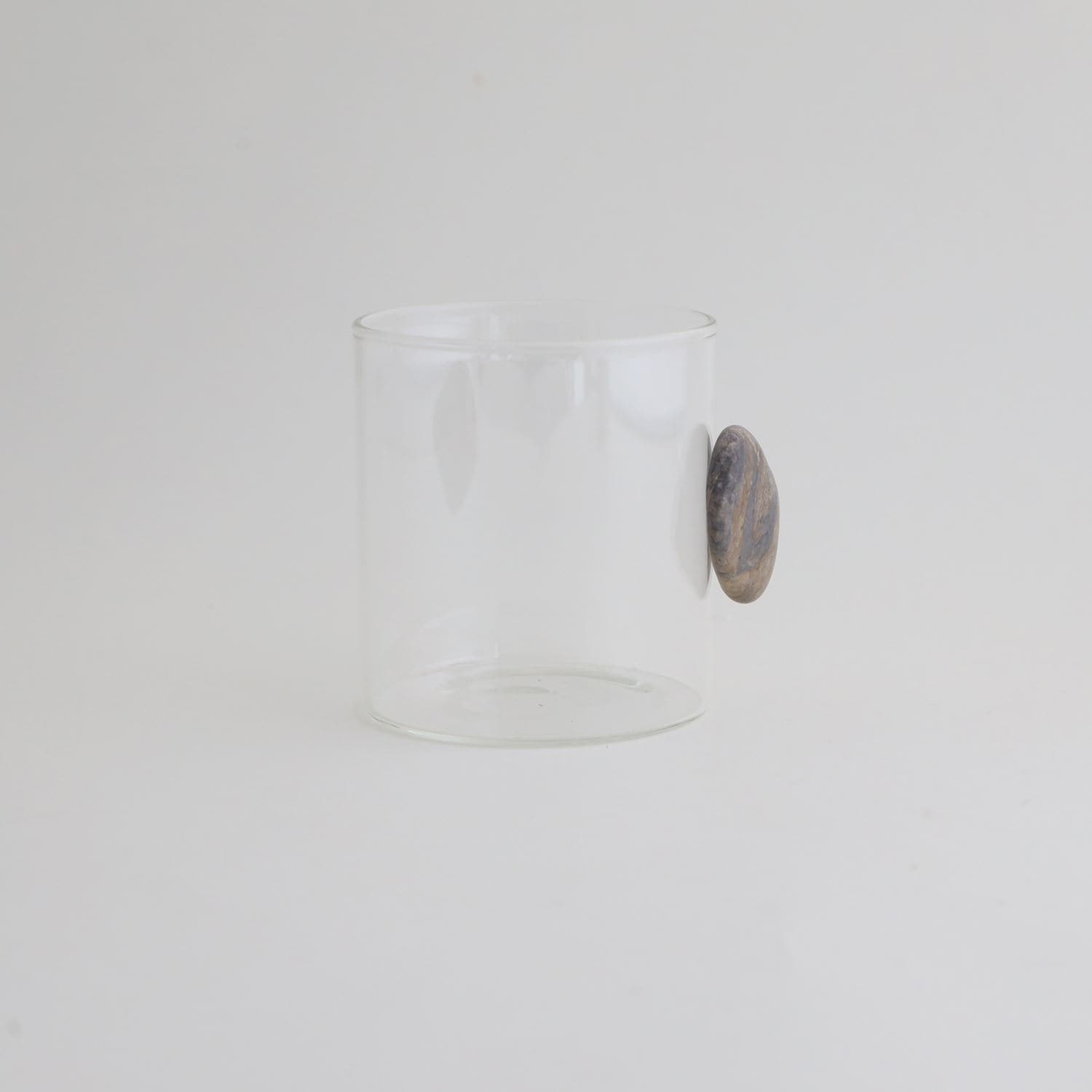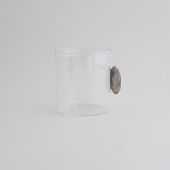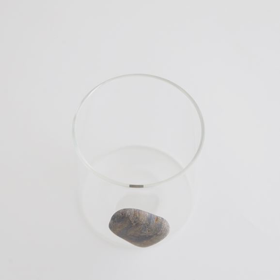 visionガラスのコップに、小さな石を取り付けられた"floating stone"。まるで浮いているかのような石の見え方です。