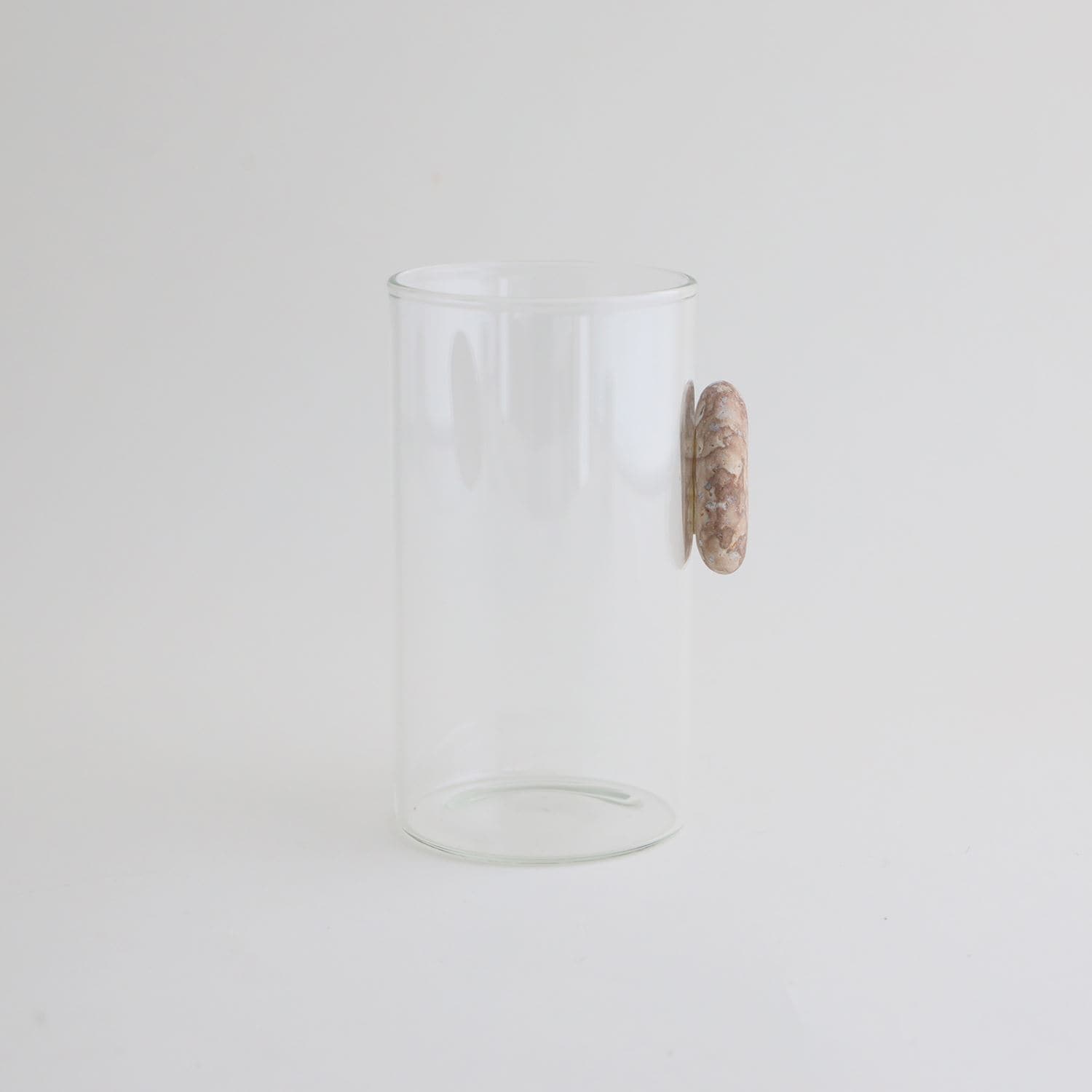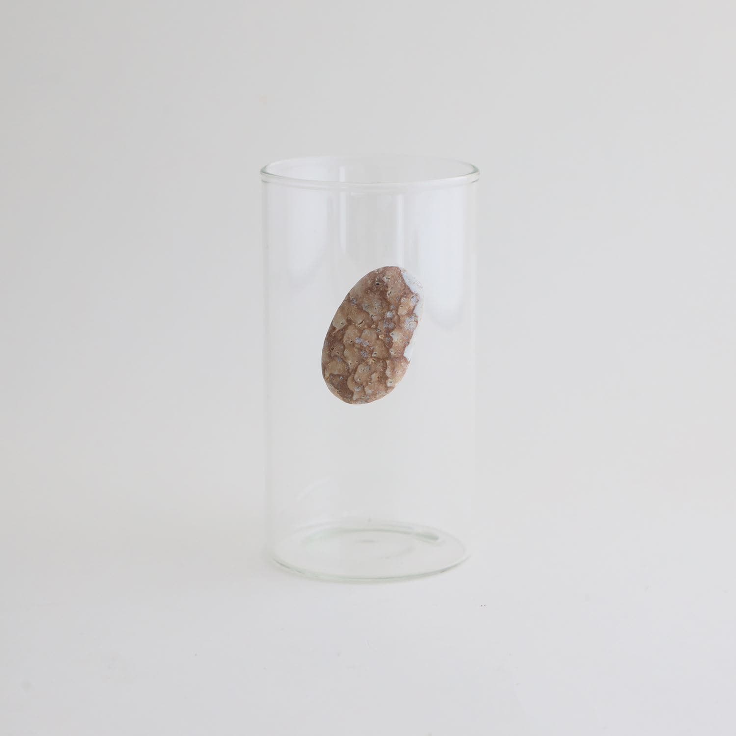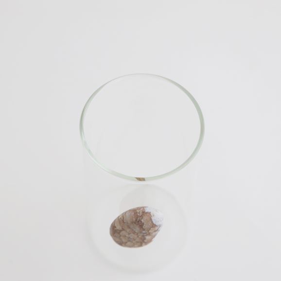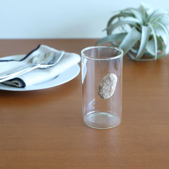 visionガラスのコップに、小さな石を取り付けられた"floating stone"。まるで浮いているかのような石の見え方です。