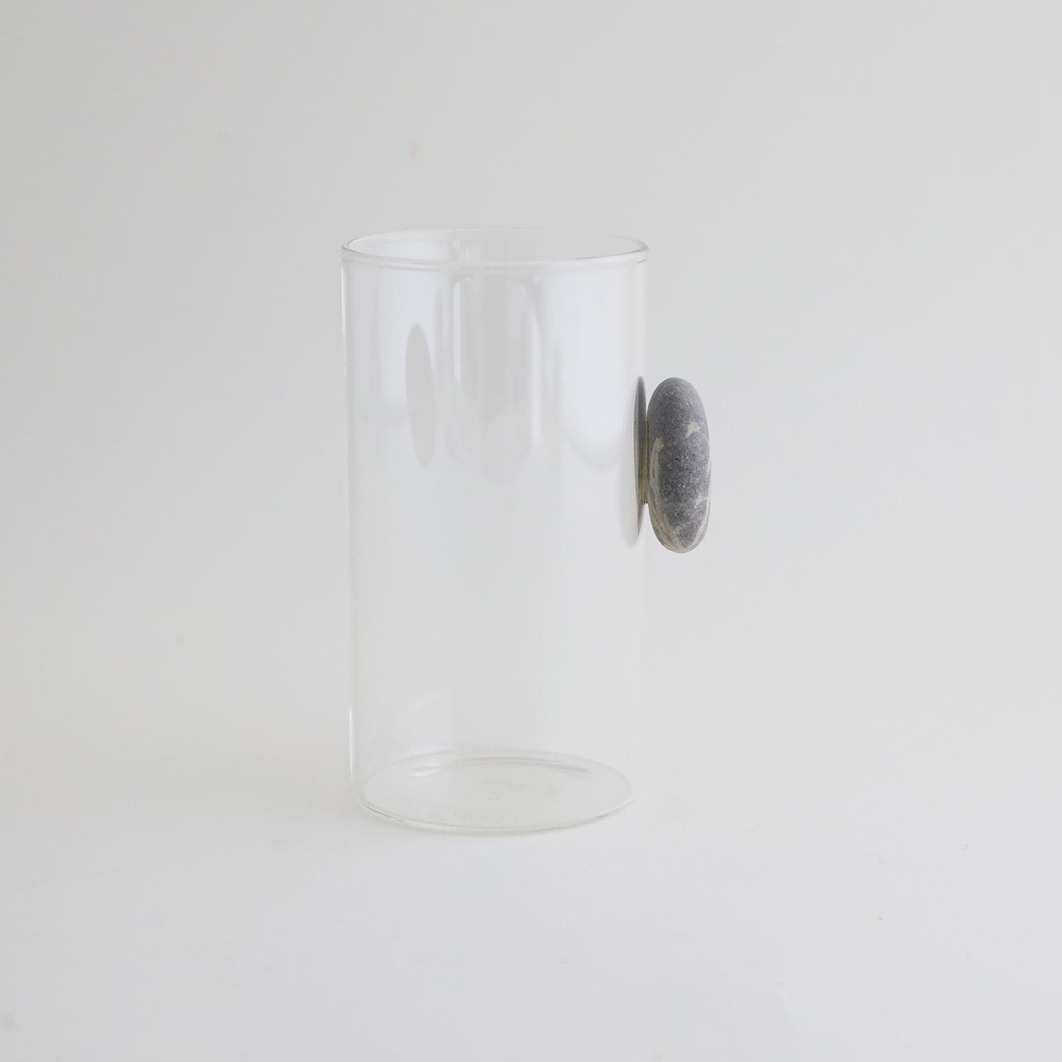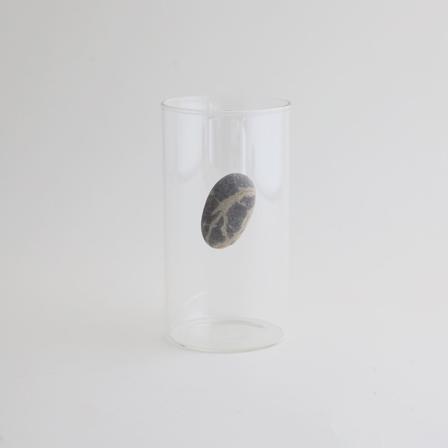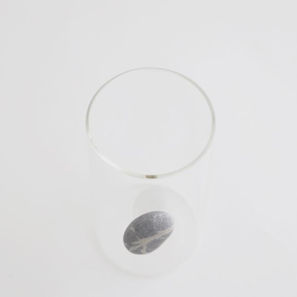 visionガラスのコップに、小さな石を取り付けられた"floating stone"。まるで浮いているかのような石の見え方です。