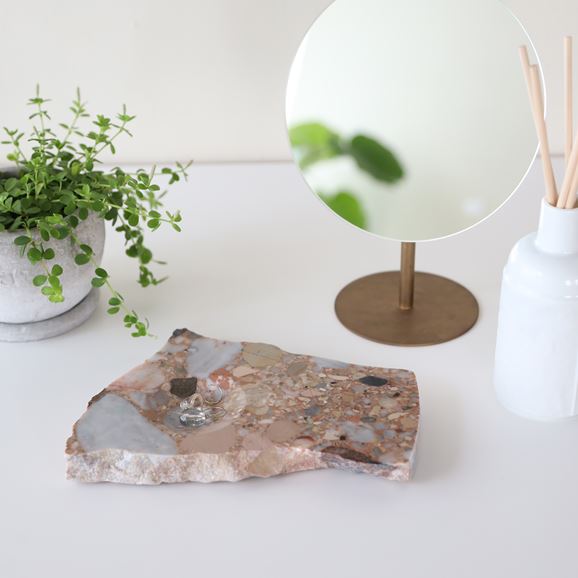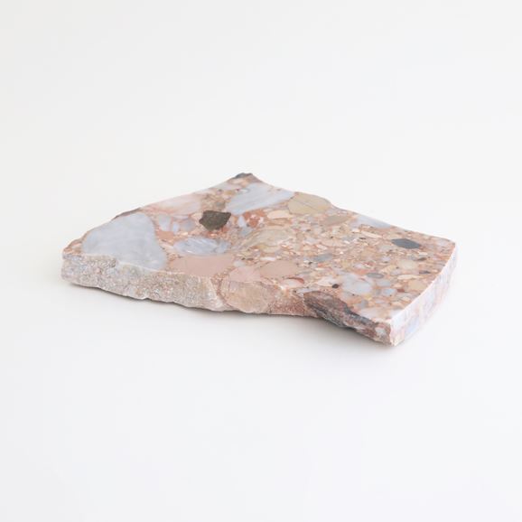 天然の大理石を加工したプレート「marble crater (マーブル クレーター)」。成形されたかたちではなく、自然に割れたようなラフな形状に、くぼみの加工を施しています。<br>大理石は駅やビルなど至るところで使われていますが、どれもきれいに成形され、貼られています。でも元々天然のものなので、もっと荒々しい表情を見せてもいいのではないか、という想いから生まれた作品です。<br>同時に、日常使いできる小物置きとしての機能も持たせています。コインや鍵などを置いたり、フラットな面には時計やメガネなどを。"MINE ORE" との組み合わせもおすすめです。<br><br>アクリルと相性が良く、外山氏が魅力を感じていた大理石を作品へ昇華させたシリーズ。きれいな表面、敷き詰められたタイルのようではなく、荒々しさや時をかけて作られたその模様、力強さを活かしつつ、少しの手間を加えることで作品にしています。<br><br>自然が作り出す造形美、その造形美を求めて自らつくりだす模様や地層。それらを作品に落とし込み、新たな表情を導きだす外山翔のアートワーク。一点一点手作業で加工された一輪挿し、大理石を大胆に使用したオブジェ、そして実験的に素材を融合させた彫刻的アートピースを紹介します。<br><h5 class="mt40">外山翔の全ラインナップはこちら</h5><a href="/shop/e/eSotoyama/"><img src="/images/item_page_banner/itemPage_bnr_sotoyama.jpg" alt="【特集】外山翔" class="itempagebnr"></a>