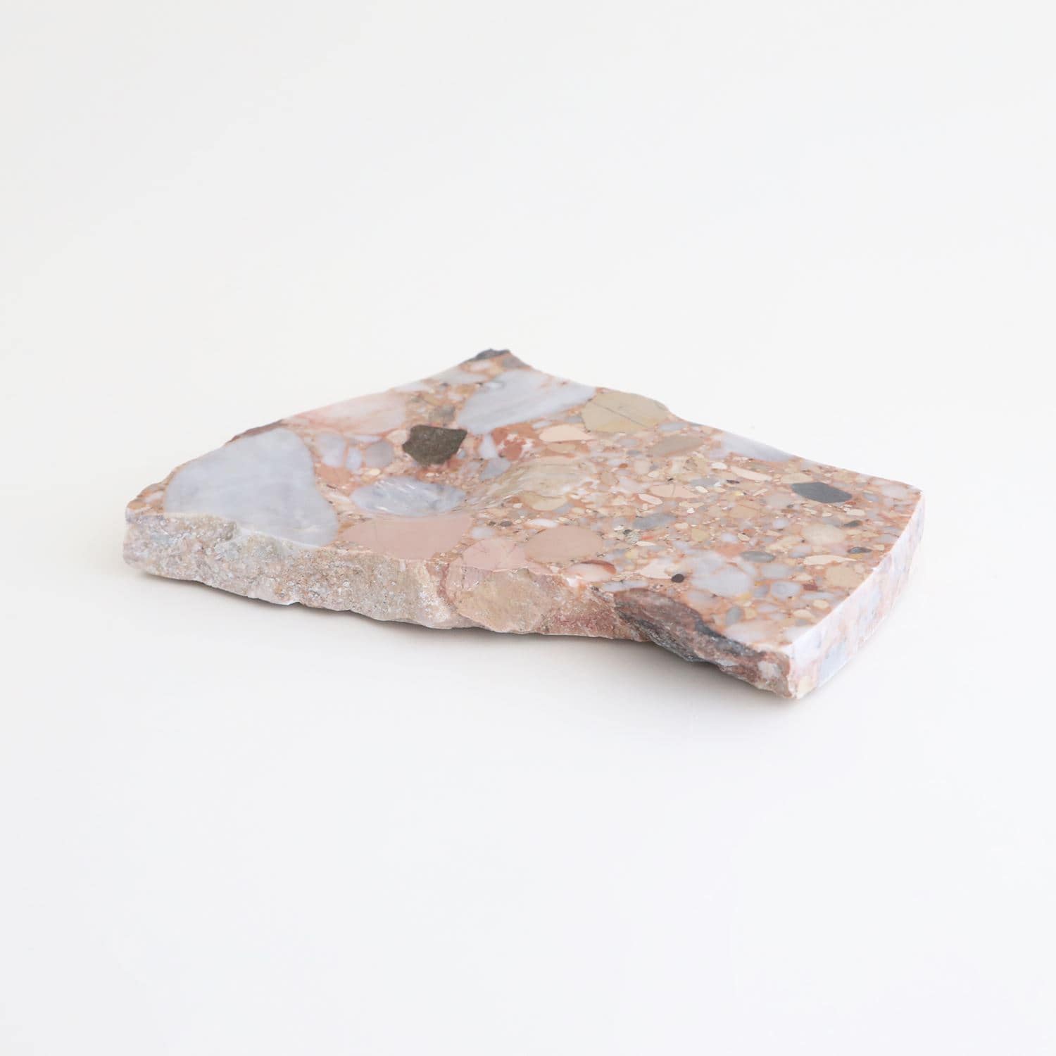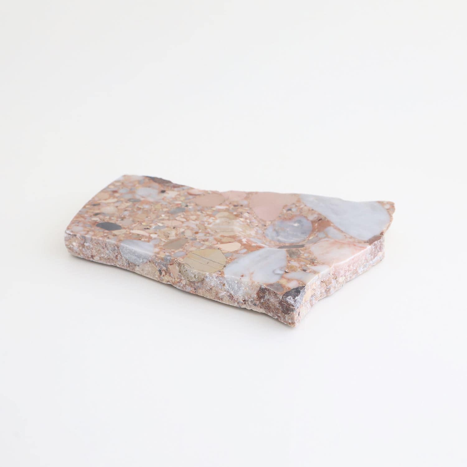 天然の大理石を加工したプレート「marble crater (マーブル クレーター)」。成形されたかたちではなく、自然に割れたようなラフな形状に、くぼみの加工を施しています。