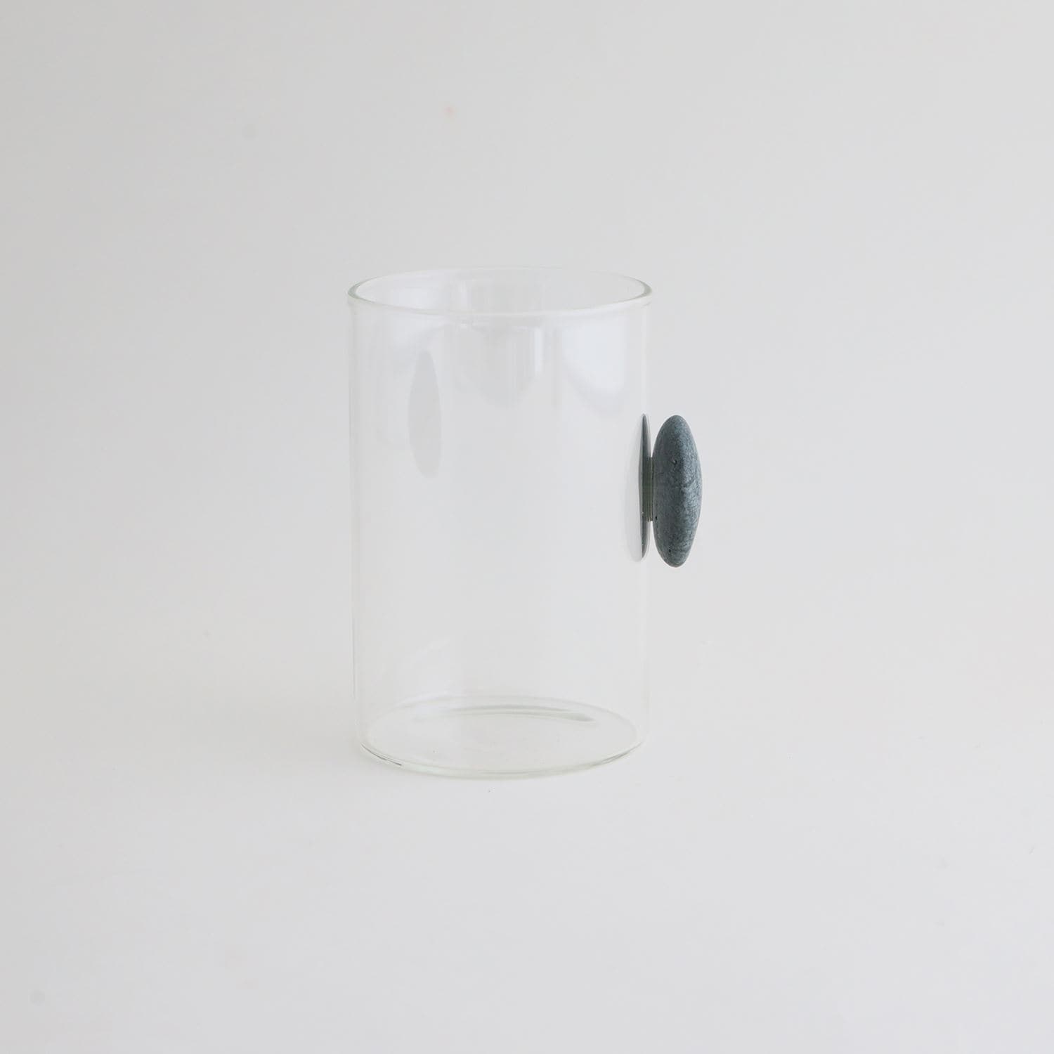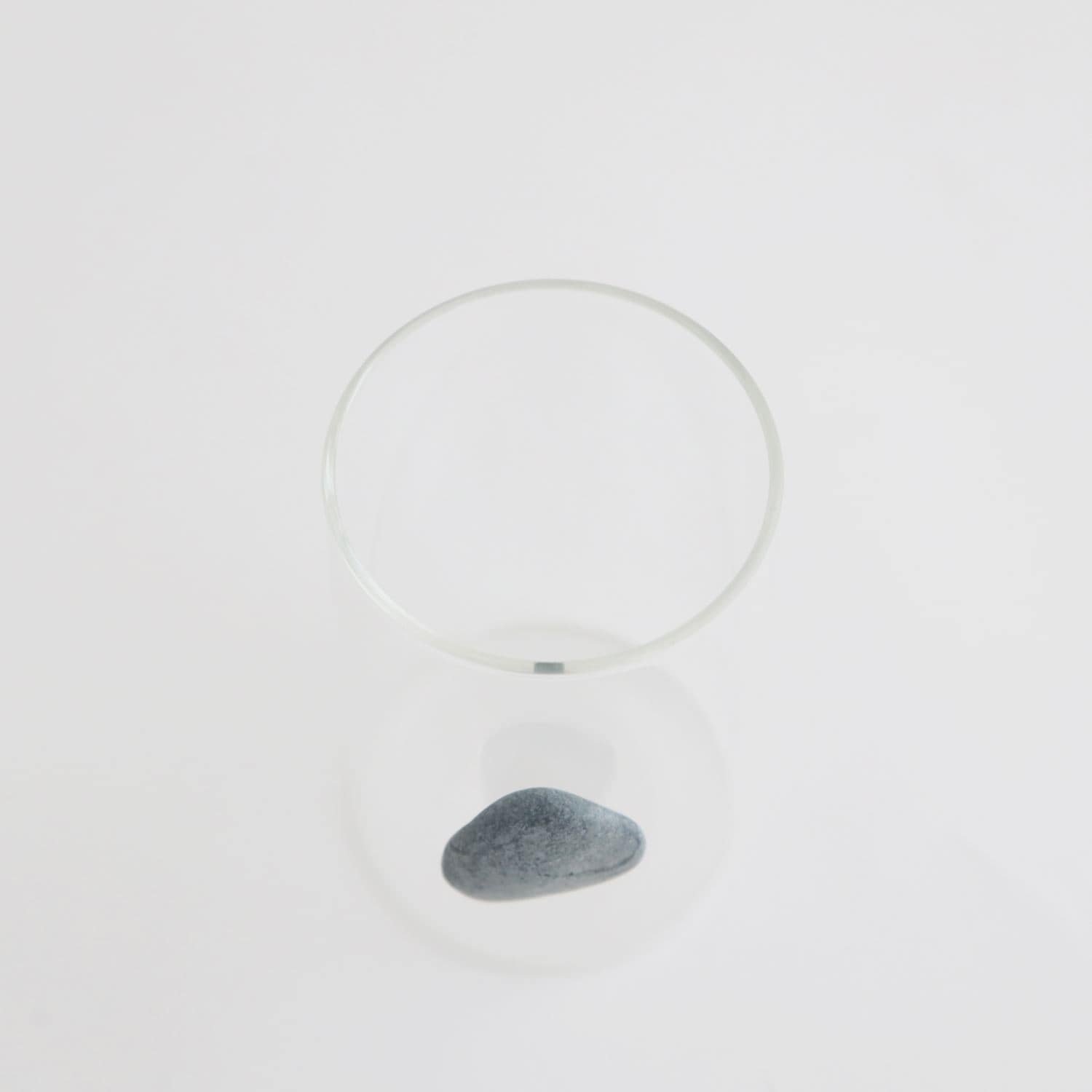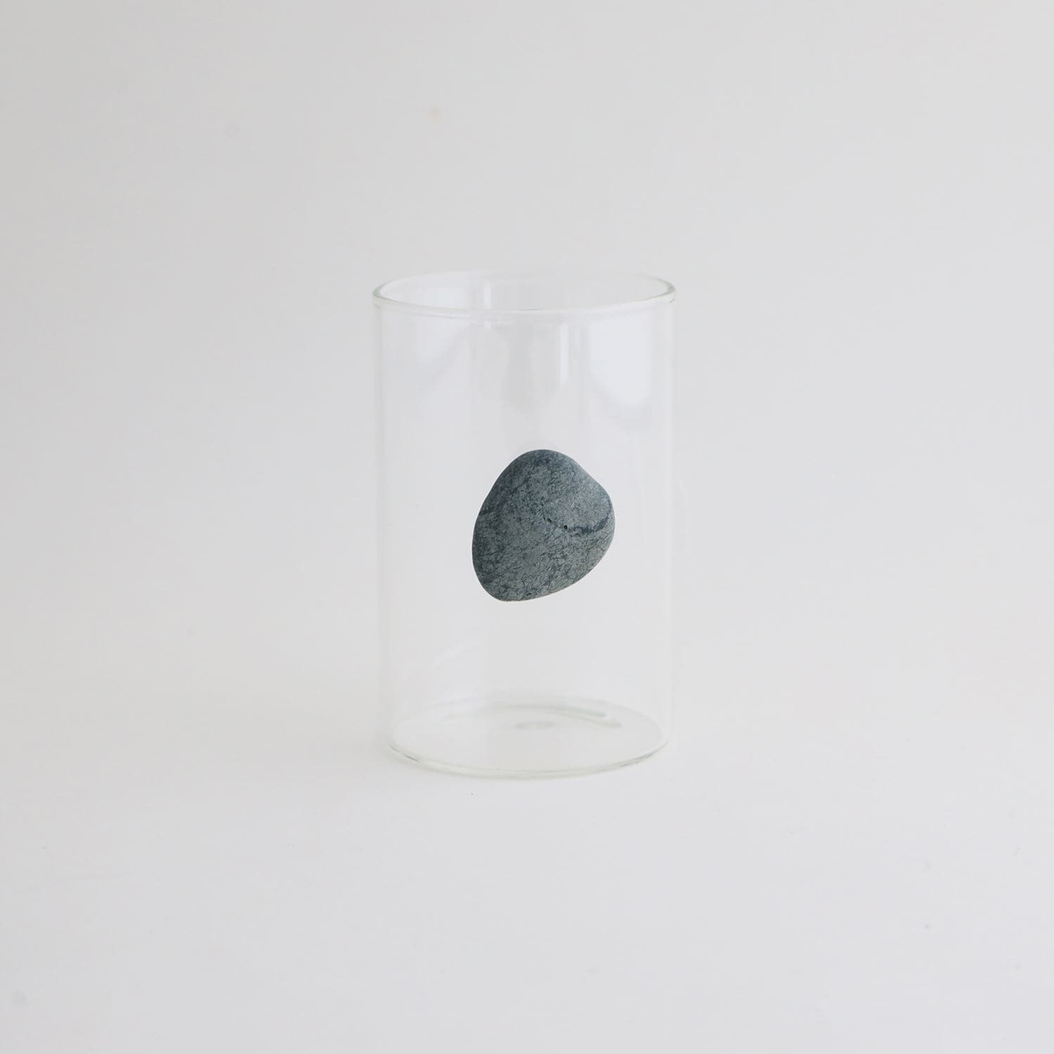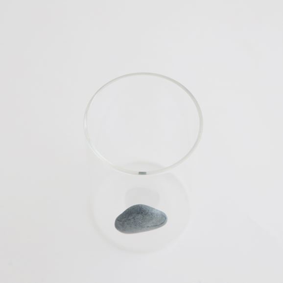 visionガラスのコップに、小さな石を取り付けられた"floating stone"。まるで浮いているかのような石の見え方です。
