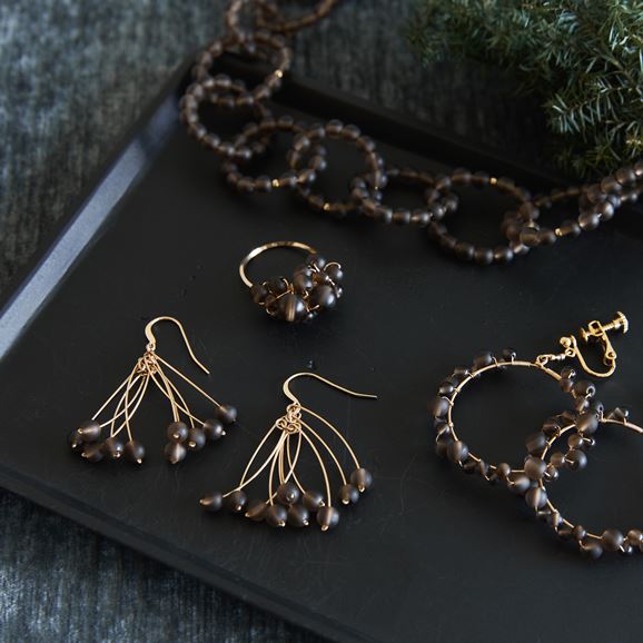 ポポラスのデザインを素材をフロストスモーキーのデザインにした、揺れ動く美しい姿が特徴のシリーズ。パールやクリスタルとはまた違ったカジュアルな印象のデザインに仕上がっています。