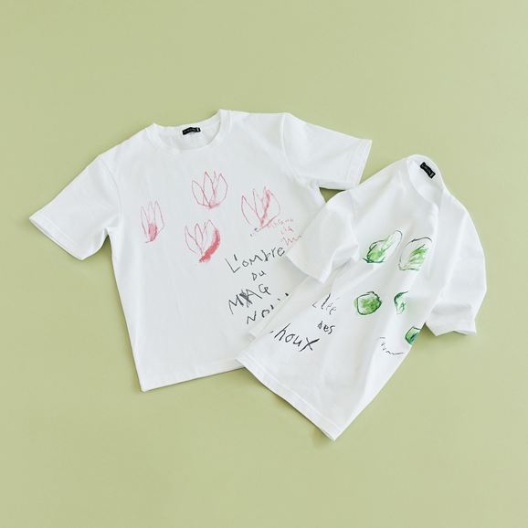 叙情的な抽象表現 "Lyrical Abstraction" をテーマに、北フランスからプロヴァンス、地中海沿岸にかけての風景をイメージし、軽やかな線と余白で季節の移ろいを描いた一枚です。日常のスタイリングにさりげなくアートを取り入れられるデザイン。一枚で着ても、ジャケットやシャツのインナーとしても映えます。